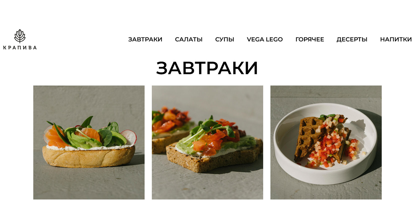 Заведение позиционирует себя как доброе кафе для всей семьи. Меню обширное — от стритфуда до венских вафель и от супов до рисовых панкейков. Каждое блюдо с «изюминкой»: например, овсяную кашу подадут с карамелизированными орехами и топленым маслом в финиковом сиропе, а сырники — с мятным кремом и клубничным вареньем. Кухня вегетарианская, при этом выбор очень богат — в меню есть основные блюда, гарниры, супы, салаты и другие позиции.