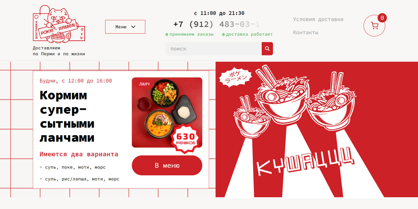 | Доставка блюд | От 100 до 750 руб. При заказе от 1000-1500 руб. — бесплатно |