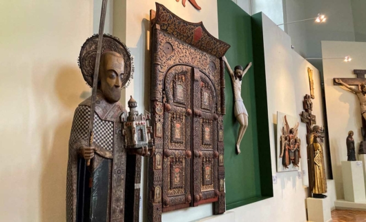 Массивный деревянный иконостас высотой от пола до потолка приковывает взгляд сразу же, как вы заходите в зал с деревянными скульптурами, на минуту заставляя забыть о других экспонатах.