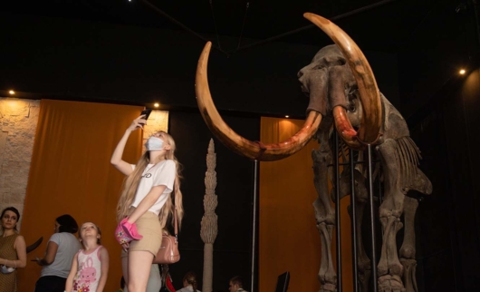 Самый популярный экспонат музея — скелет мамонта с бивнями, около которого можно сравнить себя с древним животным и сделать прекрасное фото.