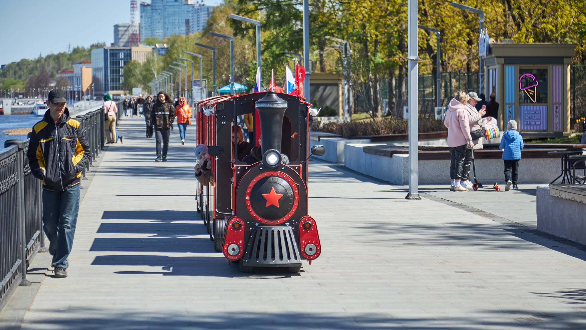 Пермь протянулась на 70 км вдоль Камы, и масштабы города интересно оценить с реки. С речной глади открывается особый вид на архитектуру и городское устройство. Прогулка на речном трамвайчике в зависимости от программы сопровождается музыкой, аудиогидом, детскими играми, живой игрой на саксофоне или рассказом экскурсовода. Продолжительность поездки 1,5 часа, но время пролетает незаметно.