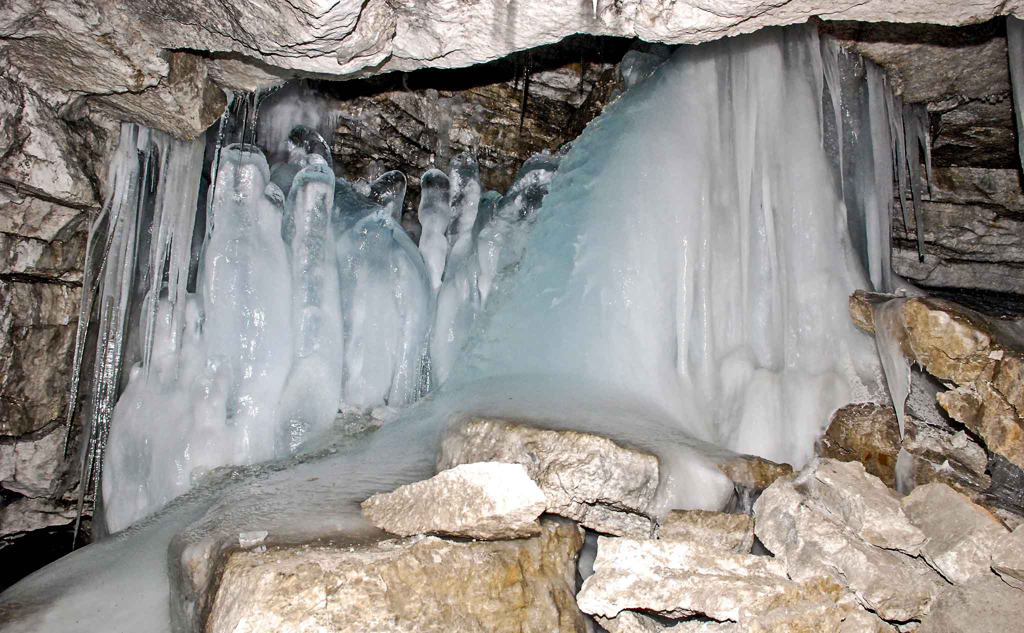 Это одна из главных природных достопримечательностей Пермского края. Хотя пещера и называется ледяной, действительно ледяные в ней только первые два грота. На их стенах наросли игольчатые кристаллы из льда, с потолка спускаются ледяные сталактиты, а снизу им навстречу поднимаются сталагмиты. Лучшее время для посещения пещеры – зима, когда все эти красоты разрастаются в полной мере.