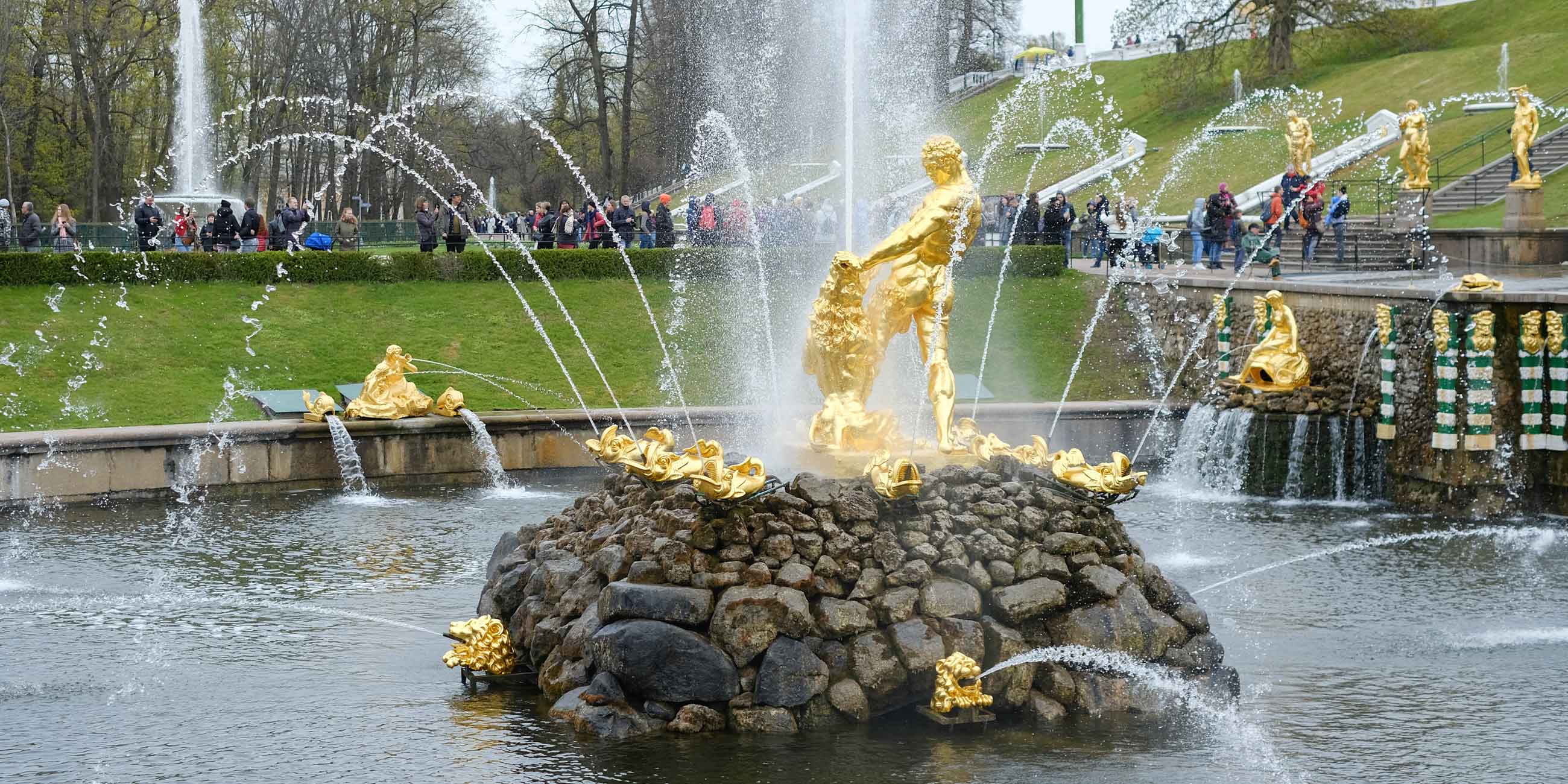 В теплое время фонтан «Самсон» запускают каждый день в 11:00. С середины октября до конца апреля увидеть его можно, но не работающим. Когда приехать, чтобы посмотреть бьющий фонтан: