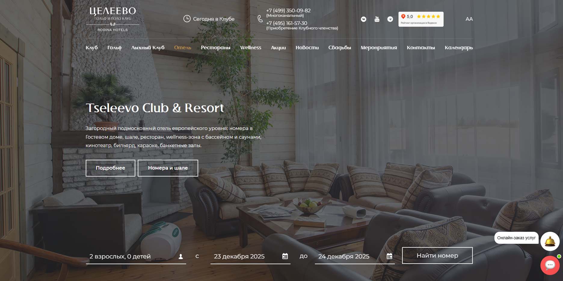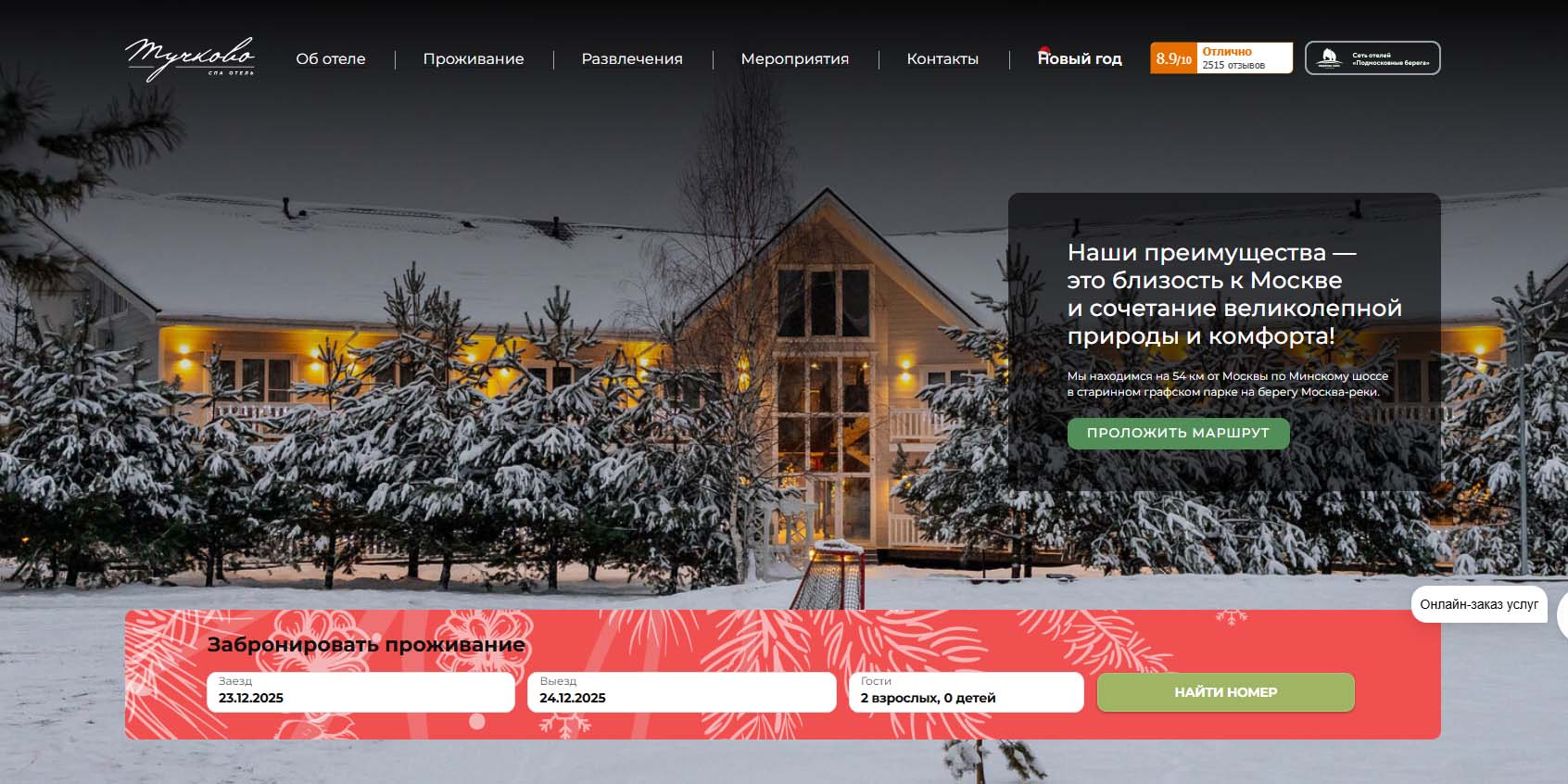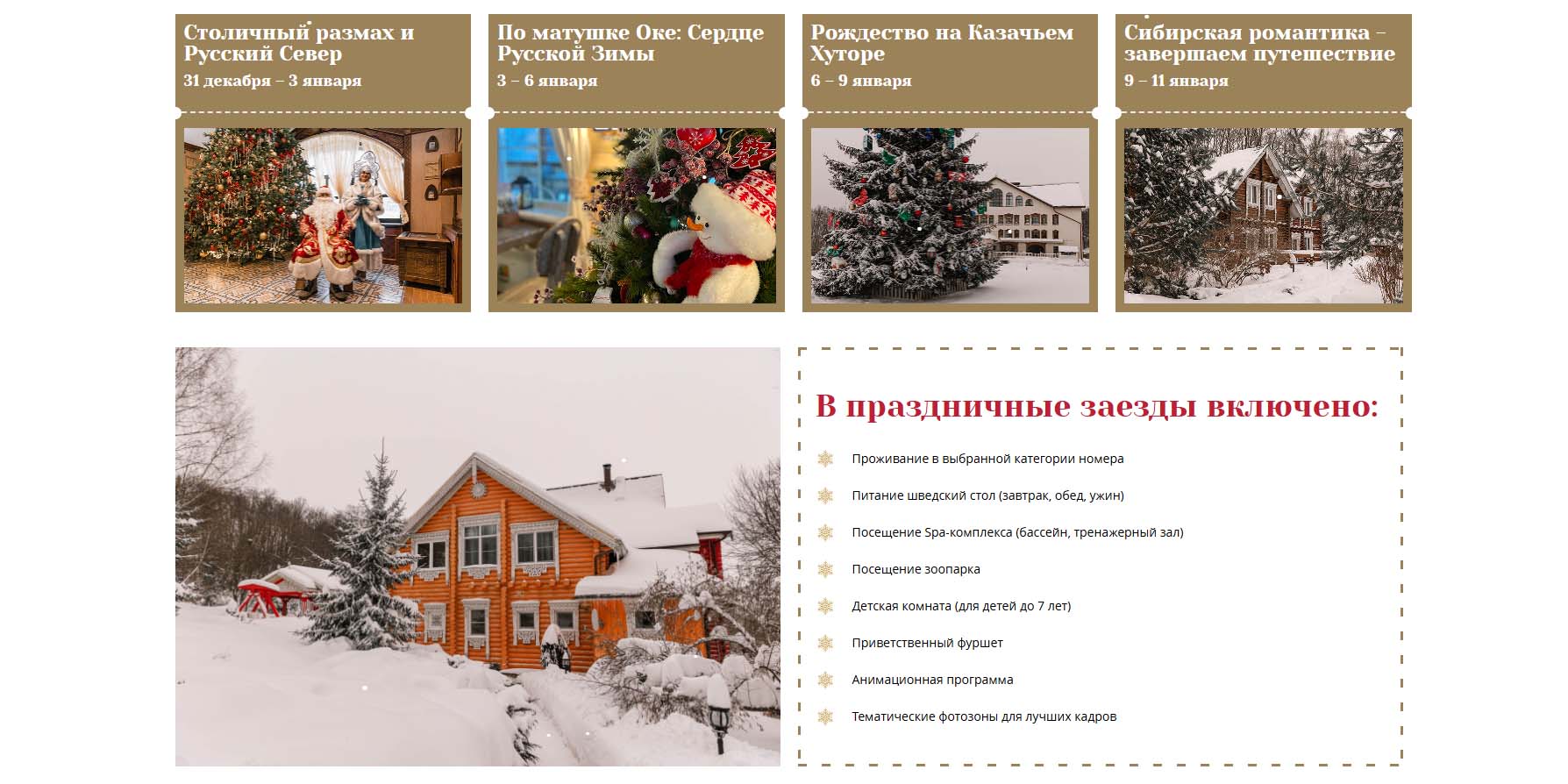 | «Целеево» | От 413 000 рублей за 3 ночи, включает новогоднюю программу |