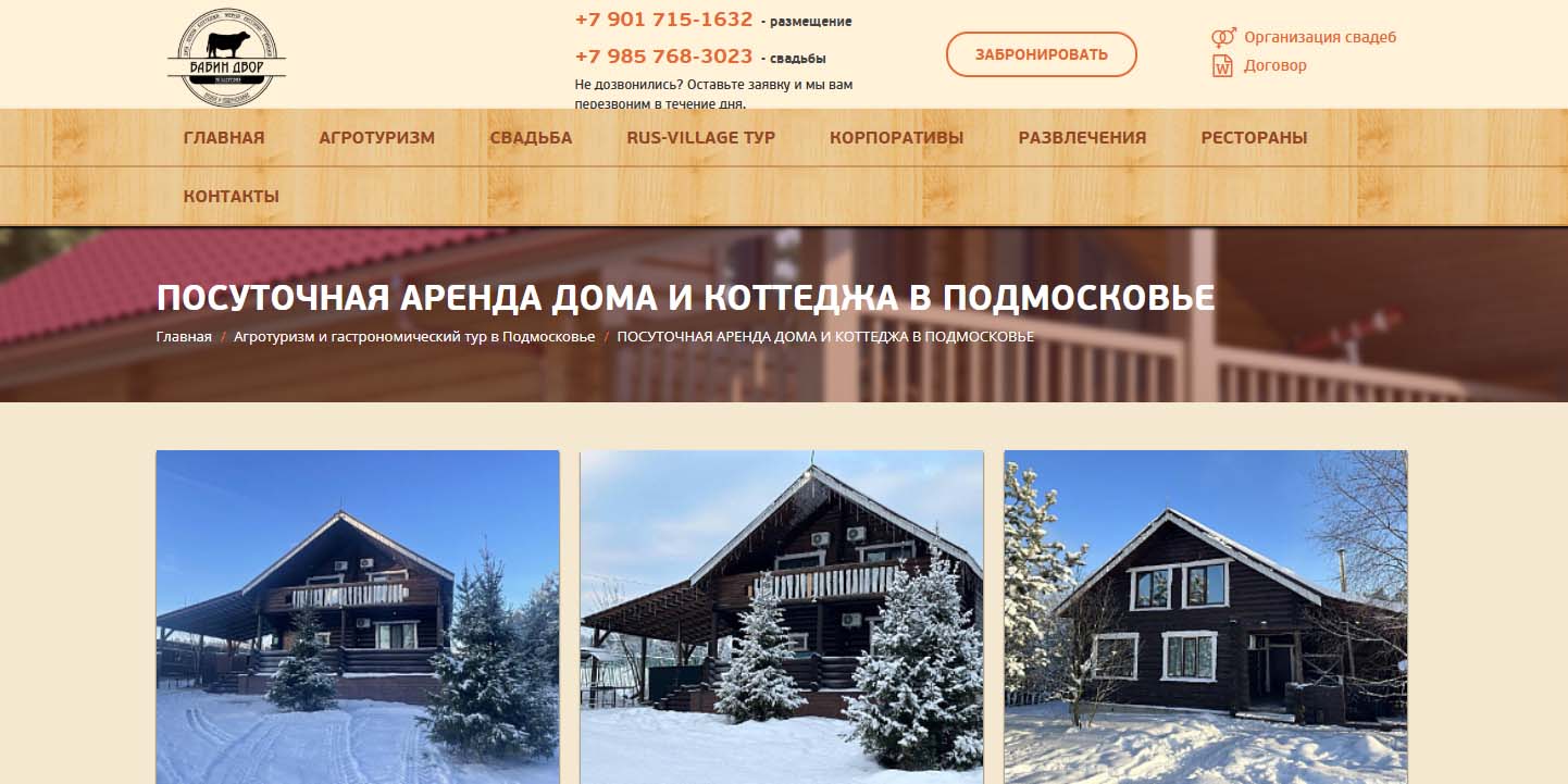 | «Бабин двор» | От 90 000 рублей за 2 ночи |