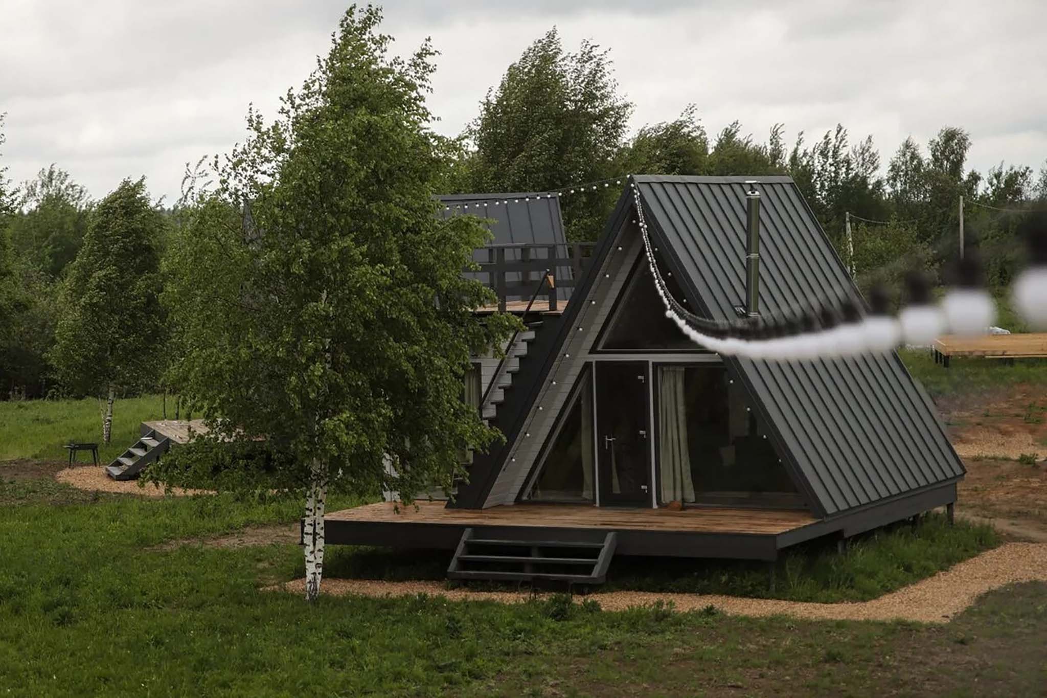 Круглогодичный глэмпинг в Подмосковье. На территории расположена мини-ферма, есть столовая. Все домики в едином стиле — в форме буквы «А»: на первом этаже гостиная, кухня и санузел — на втором спальня. Есть детские площадки и мангальные зоны. Можно приезжать с животными.