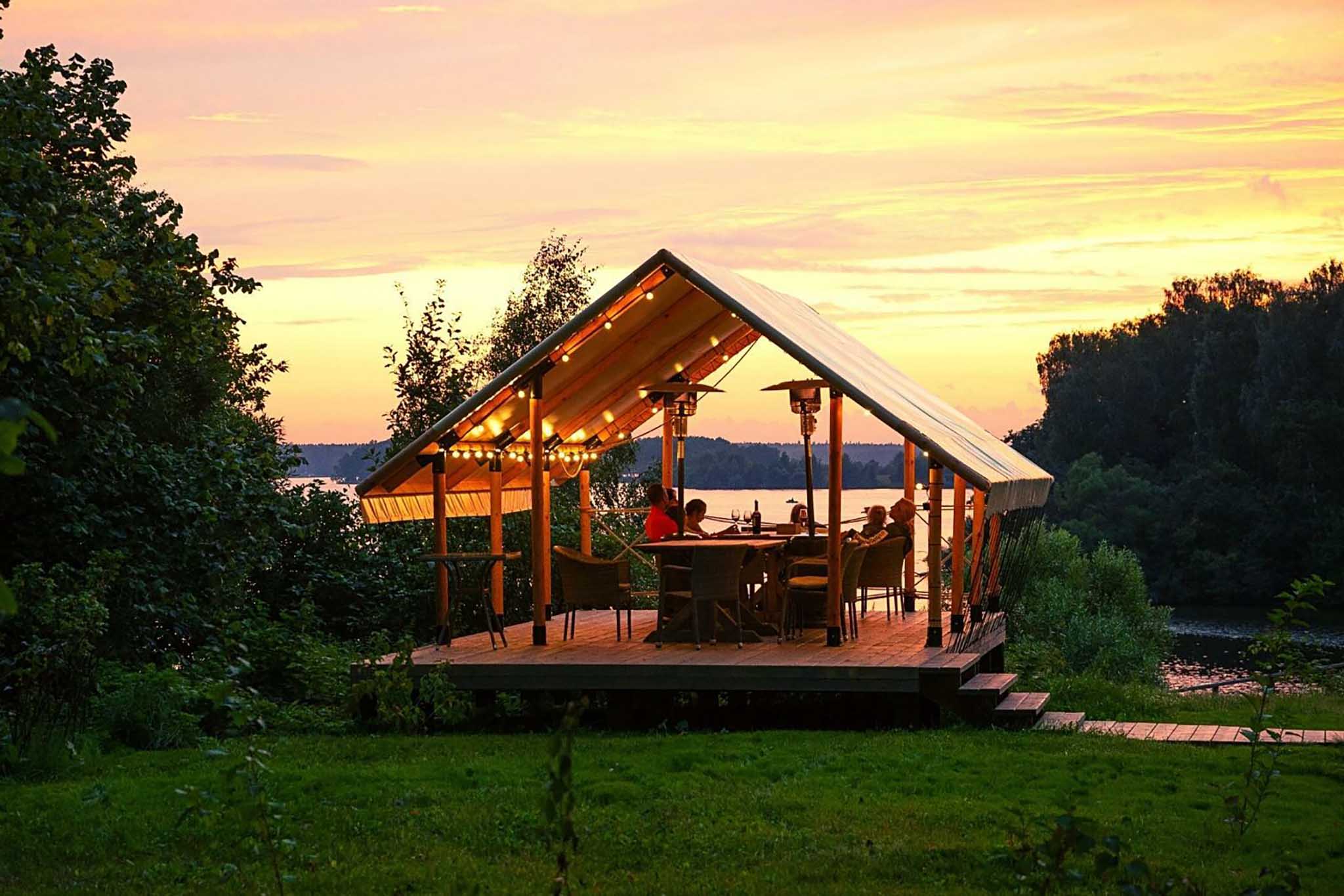 Один из лучших глэмпингов Подмосковья. Организаторы честно говорят: у нас дорого, уровень пятизвездочного отеля. Потому что питание «все включено», за прокат инвентаря и досуг платить гостям отдельно не надо. Правда, жить только в сафари-тентах. Зато у каждой палатки свой ключик к отдельному санузлу. Место очень живописное. Уик-энд можно бронировать только на две ночи.