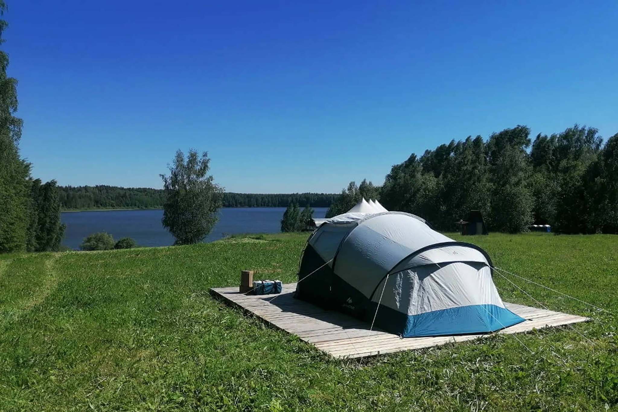 Кемпинг-парк в 200 километрах от Москвы на берегу реки Медведица — это левый приток Волги, который впадает в Угличское водохранилище. Кроме места под стоянку, можно снять палатку на троих или четверых человек, либо индейское типи. На территории есть место для занятий йогой и медитации. Мастер-классы с тренерами тоже проводят. В прокате инвентарь для сплавов и речных прогулок — лодки, сап-борды. Если поедете через Тверь, то в навигаторе укажите точку Горицы и направляйтесь через этот населенный пункт к кемпингу — там дорога лучше.
