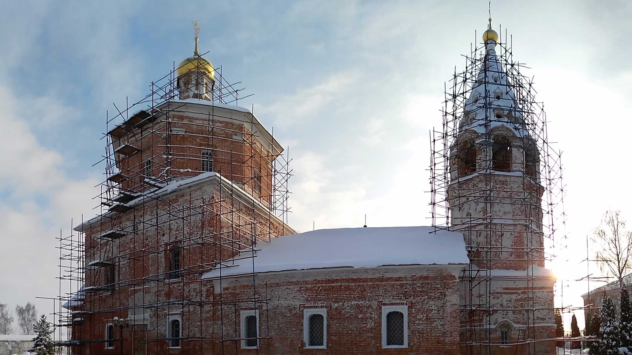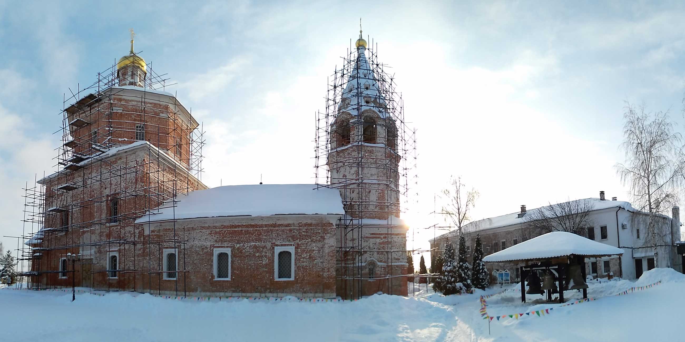Главный собор обители — Собор Рождества Пресвятой Богородицы. Реставрационные работы здесь идут полным ходом, но туристы могут заглянуть внутрь.
