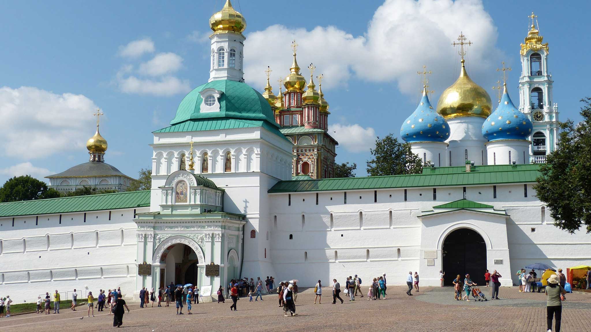 До самой Лавры от Радонежа — примерно 15 километров. А это крупнейший мужской монастырь страны, к которому испокон веков сами цари не только ездили — пешком (!) ходили. Настолько святым местом считалась обитель, основанная в 14 веке Сергием Радонежским. К его мощам тут стоит неизменная очередь. Именно в этой обители Андрей Рублев писал свою знаменитую «Троицу» (сейчас икона хранится в московской Третьяковке и на праздник выставляется в храме рядом с галереей).