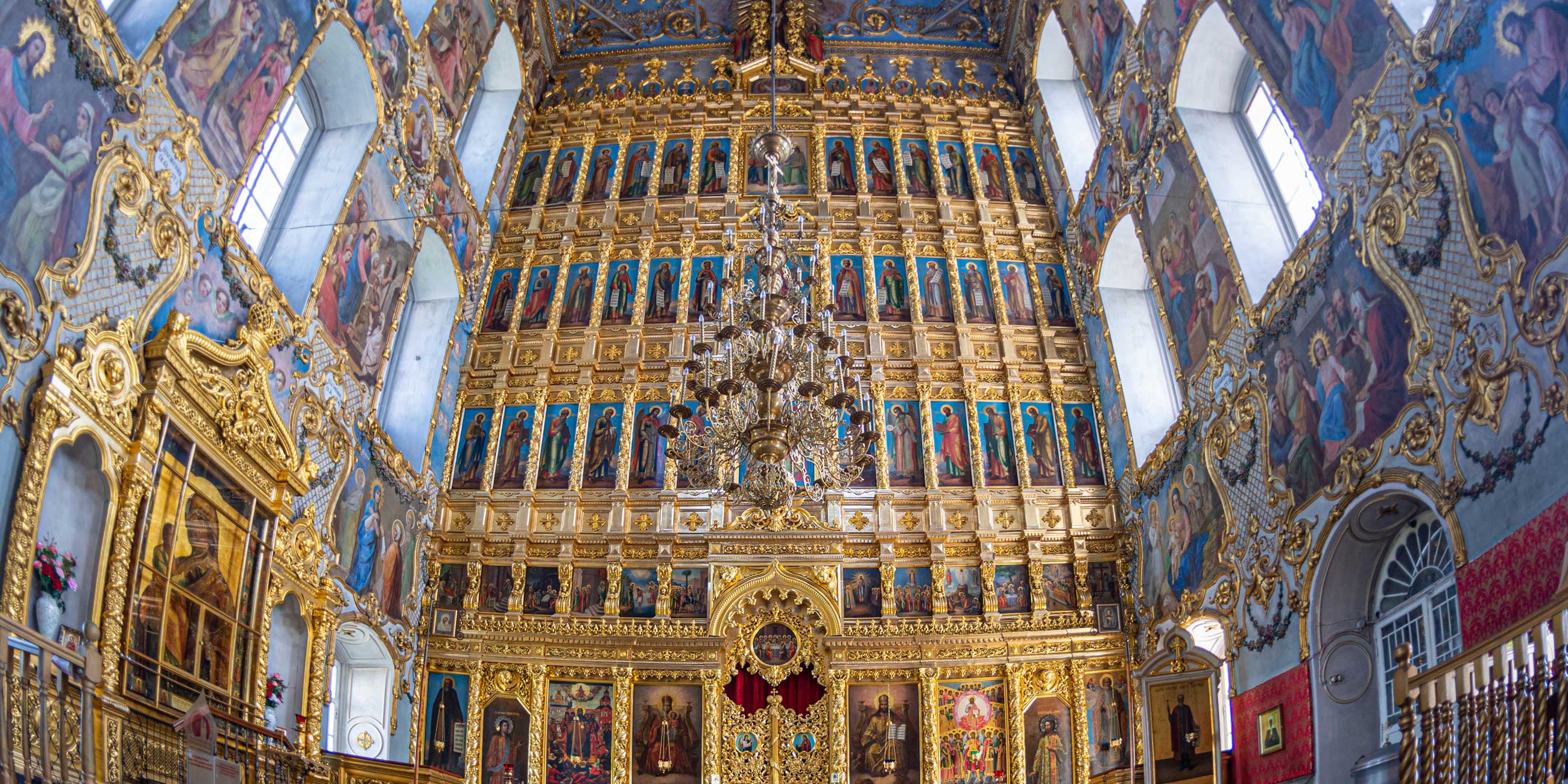 Его украшением является резной позолоченный шестиярусный иконостас. Над ним работали лучшие мастера Оружейной палаты, царские иконописцы Тихон Филатьев и Кирилл Уланов. Такое действительно редко где увидишь.