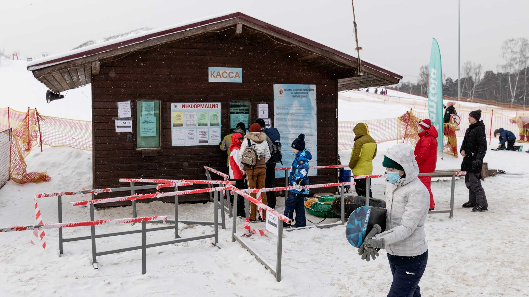 Далее все проходят через очередь в кассу: работает всего одно окно. Поэтому, если хотите часто приезжать сюда, имеет смысл брать ски-пасс с абонементом на сезон и заблаговременно пополнять его.