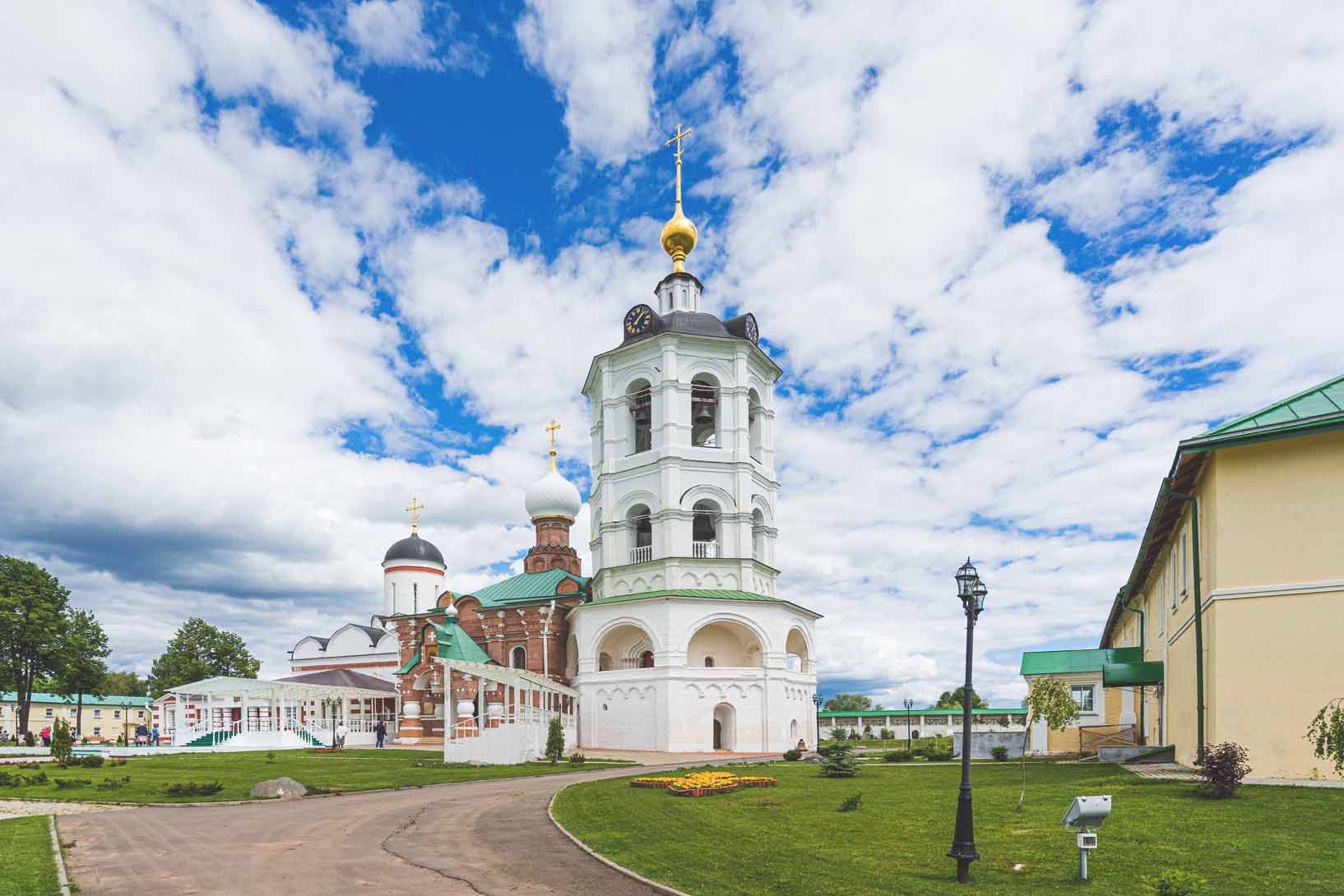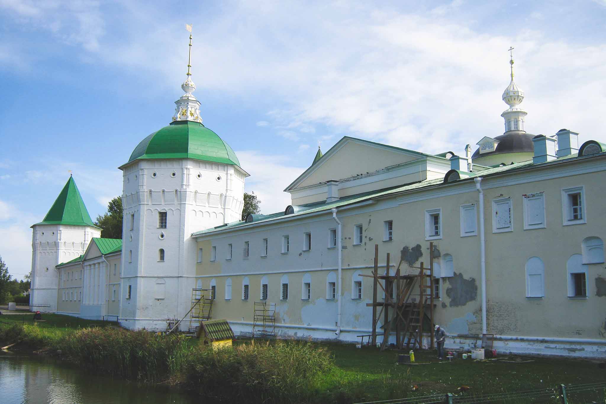 Никольский собор. С этого некогда деревянного храма начинался монастырь. В XVI веке собор возвели из кирпича. Позднее его несколько раз перестраивали, придавая новые черты и дополняя малыми главами. При реконструкции в 60-ые годы XX века собору вернули первозданный вид. Ныне он одноглавый и украшен килевидными сводами и архитектурными кокошниками, ранее сокрытыми под кровлей.