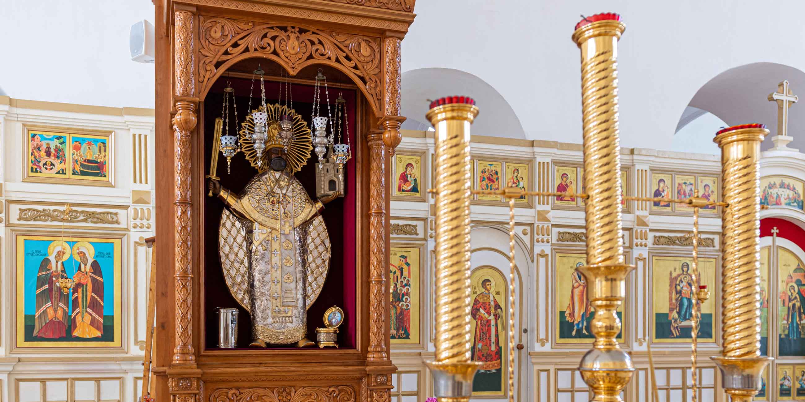Чудотворный образ Святителя Николая. Он явился в видении монаху-отшельнику Ионе, который он потом запечатлел в полутораметровой деревянной основе. Образ чудотворный, паломники просят его об исцелении.
