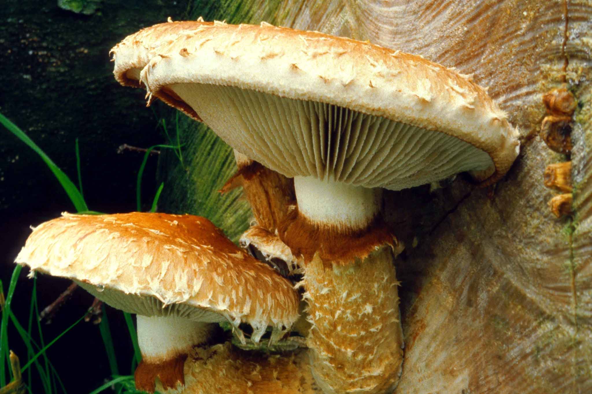 А еще есть то, что в народе называют «королевским опенком», из-за внушительного внешнего вида: гриб действительно выглядит как большой, мощный опенок, покрытый чешуйками. Это отразилось в его официальном названии: чешуйчатка. Он съедобен после отваривания, хотя не всем нравится его вкус. Чешуйчатка содержит уникальное вещество, помогающее бороться с подагрой (сейчас разрабатывают лекарство на ее основе). А с другой стороны, как выяснилось в последние годы, после ее употребления могут возникать зрительные галлюцинации (правда, такое бывает очень редко).