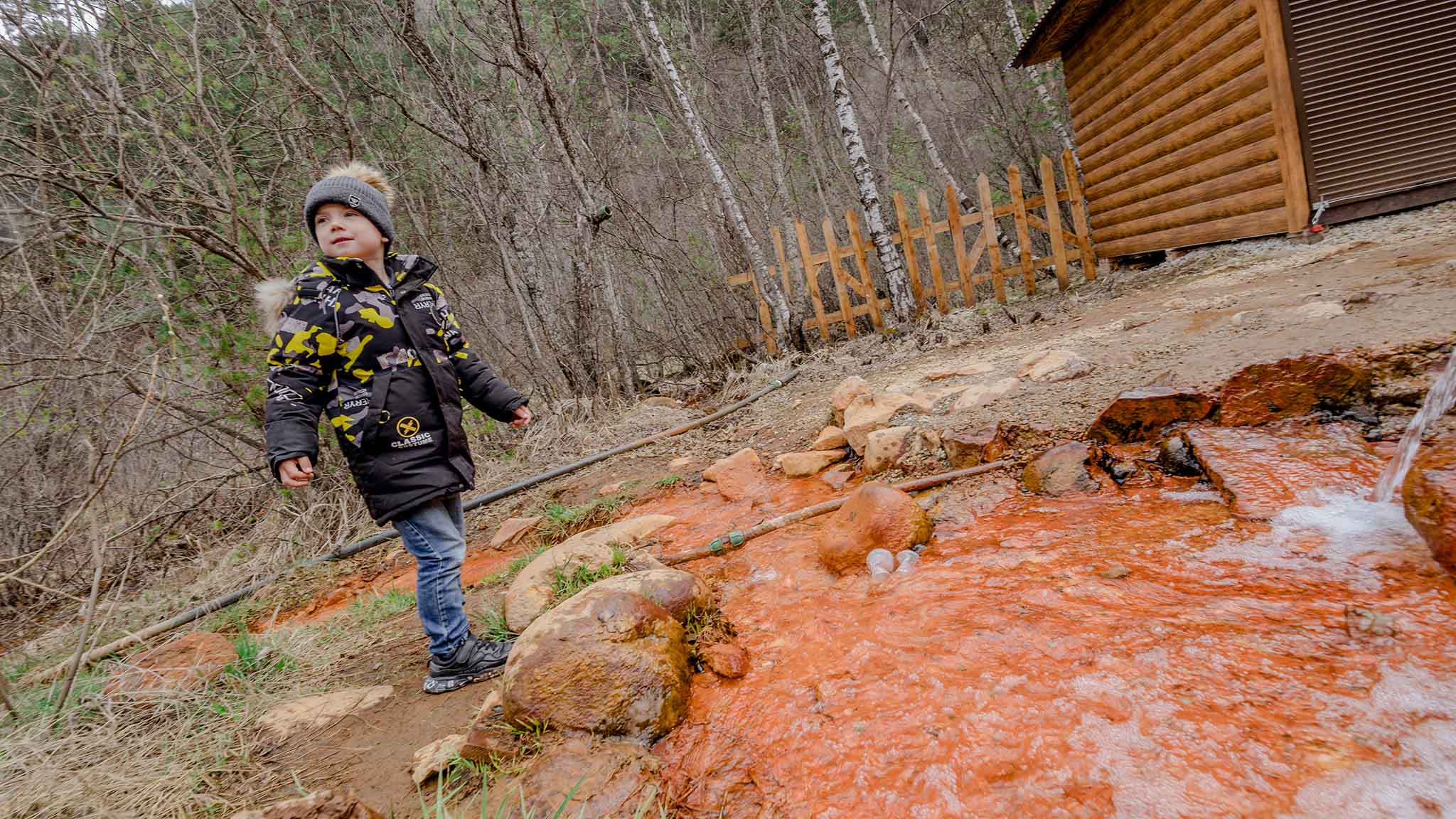 Если фотографироваться на фоне водоема, на снимок попадут еще и сама долина с ее богатой растительностью. А если спуститься прямо к берегу, получится кадр у «железной» реки. Многие любят позировать прямо у источников, где набирают воду, или пить перед камерой, зачерпывая воду руками прямо из колодца с нарзаном.
