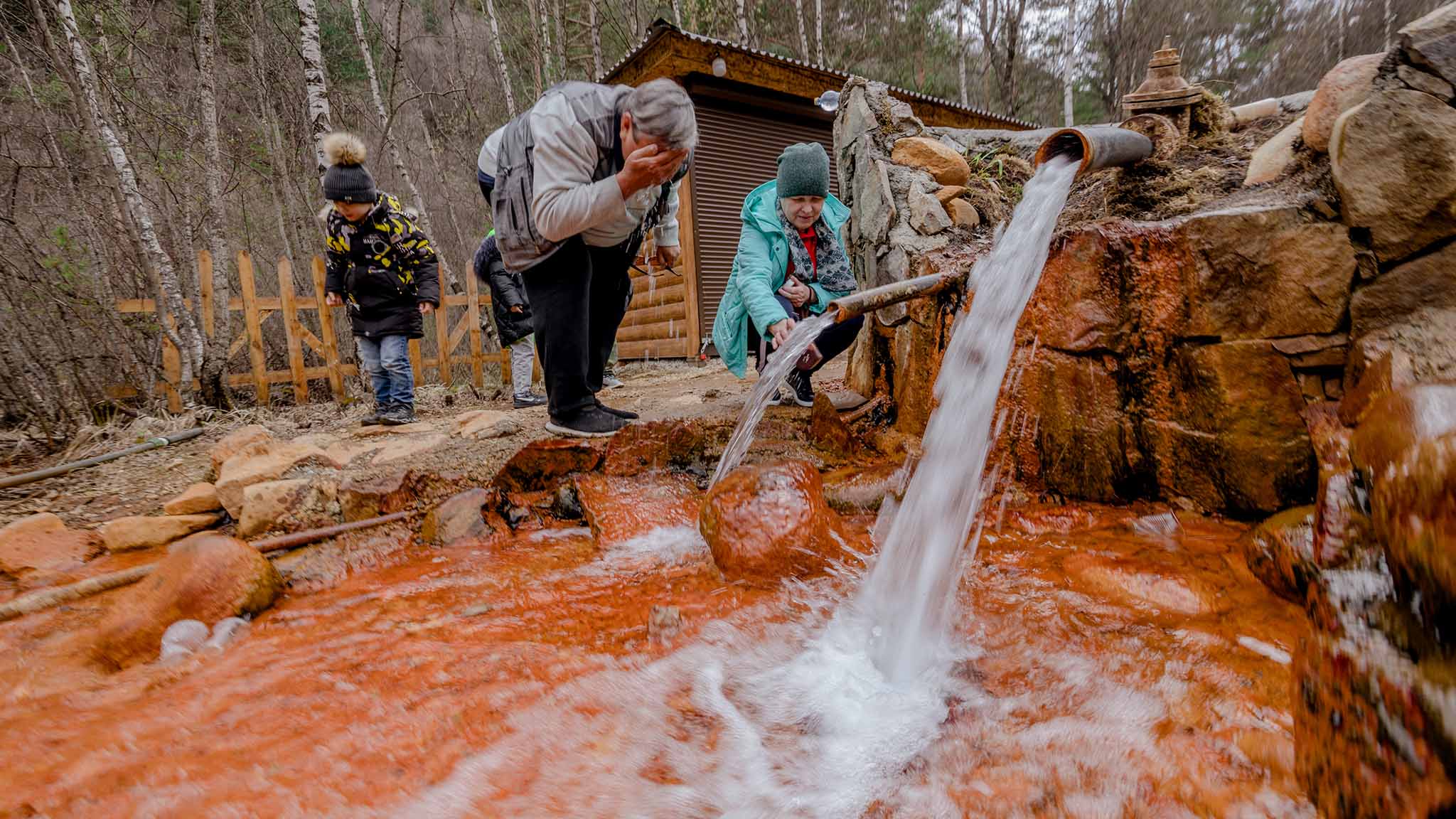 Источники расположены в долине реки Хасаут, на фоне которой можно сделать необычные снимки. Вода в речке рыжего цвета, поскольку процентов на 30-40 состоит из нарзана, стекающего из источников.