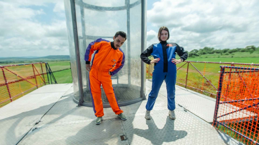 Встретивший нас ас парашютных прыжков и глава местной Федерации парашютного спорта ФАВОРИТ-У Максим Резников провел инструктаж, а затем зашел в аппарат первым. Сказать, что он показал класс сотней пируэтов в замкнутом пространстве за минуту – ничего не сказать. Дверца открылась, тестировать «парашютный» тренажер первым пошел журналист Руслан Новиков. Максим, выступая в роли помощника и инструктора, постоянно показывал «шаку» – это популярный жест из оттопыренного пальца и мизинца. «Каждый по-своему интерпретирует это движение, для нас в обучении это знак – расслабься», – объяснил он. Медитативное удовольствие моментально поглощает и нас, стоит только распробовать полет.