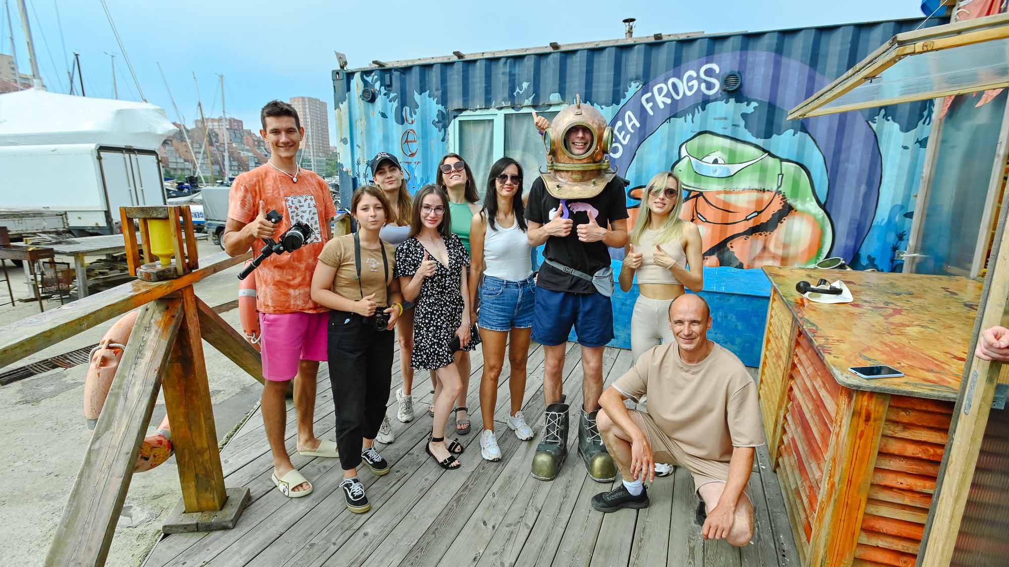 Во второй день мы решили отдать дань известному океанографу и водолазу. В городе у моря не побывать у причалов яхт-клуба «Семь футов», не окунуться в морскую воду – кощунство. Корреспондент Кирилл Самойлов назвал небольшой антуражный домик ныряльщиков бунгало. Sea Frogs Diving находится прямо там: посреди маломерных судов, катеров, лодок и моря – в естественной среде.