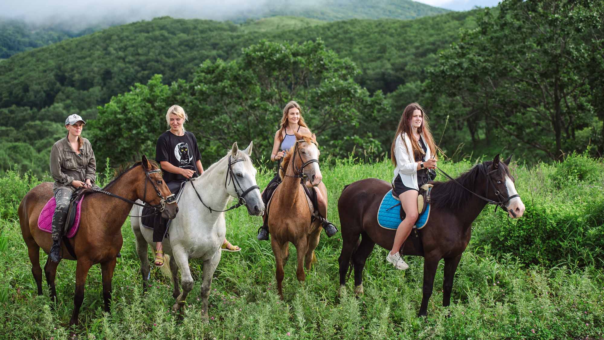 Специалисты кратко рассказали, как обращаться с животными. Лошади очень умны, чувствительны и даже эмоциональны. Садимся в седла. На пути к морскому пейзажу еще нужно преодолеть несколько препятствий. В Находке буквально на днях был настоящий потоп, поэтому перед нами внушительная водная преграда. Коням примерно по колено, сами проверять не стали…Максимус справляется без проблем, следом Рада, Иртыш оббегает по берегу, а вот остальные замешкались. Наставники возвращаются и помогают, продолжаем урок по «управлению» лошадьми, стоя в луже. Оказалось, все немного труднее, чем на первый взгляд, но незабываемые впечатления и контакт с лошадью открывает перед человеком новые грани.