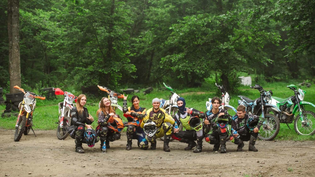 Пробуждение в этот день было ранним. Стартуем из Владивостока – встречает пасмурное утро, но лондонский туман лишь задал колориту предстоящей поездке. Корреспонденту Екатерине Максимовой впервые в жизни предстояло сесть на мотоцикл Enduro (эндуро). Команда примерно понимала, что их ждет, когда они перейдут порог спортивного клуба «МотоPROхват». Ярко-зеленый логотип с изображением ниндзя на мотоцикле как бы намекал: «Сегодня вы будете тестировать не только мото, но и свою ловкость и силы». Любителей экстрима встретила улыбчивая управляющая Татьяна Чепорова. Мотоледи и инструкторы помогли надеть нам защитную экипировку. Стоит отметить, что каждому участнику подобрали мотоцикл согласно комплекции, даже для самой миниатюрной «дюймовочки» в нашей команде нашелся подходящий мото.
