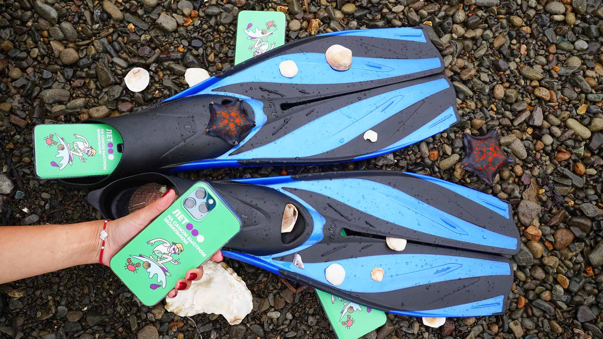 Как объяснил Сергей, ласты для плавания Tusa X-Pert Evolution сделаны из комбинированных материалов и прекрасно подходят для сноркелинга, а 20-градусный угол изгиба лопасти к стопе позволяет эффективнее грести вперед, так тратится меньше энергии. Для комфортного ныряния в «Спормаркете на Заре» выбрали набор компании Tusa, в который вошла трехлинзовая маска с боковыми окошками для панорамного обзора. Система же Hyperdry позволяет с легкостью, с помощью всего одного выдоха, очистить маску от воды. Еще в комплект входит трубка с водоотталкивающей системой с точно таким же названием. Hyperdry препятствует попаданию воды внутрь элемента экипировки.