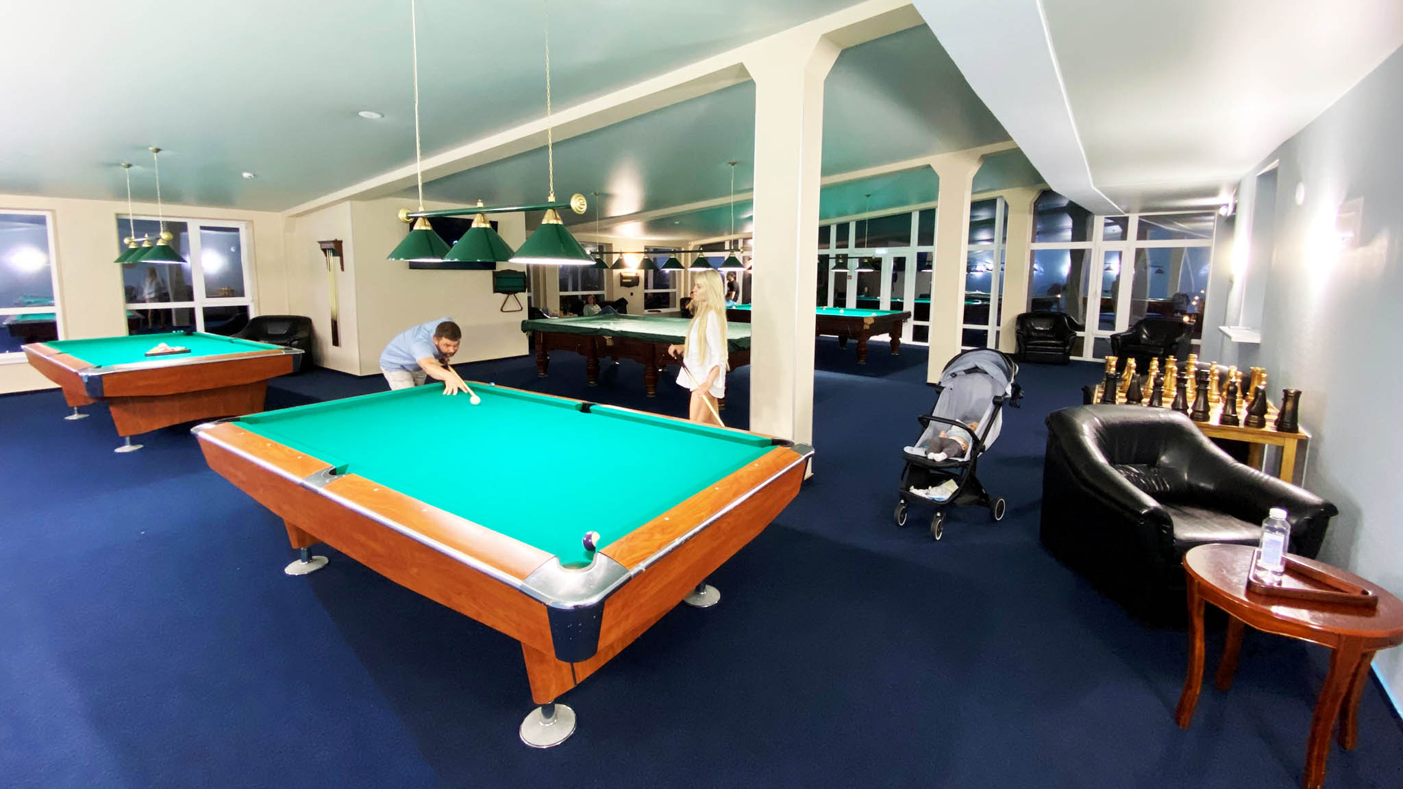 Оставив практически всю энергию в бассейне, совершили набег на ресторан, где нашим трофеем стал ужин в формате шведского стола. Восполнив резервы, отправились не в номера, хотя там очень уютно, а на поиски приключений. И нашли на базе «Теплое море» бильярдный зал! Тут есть столы и для русского бильярда, и для американки.