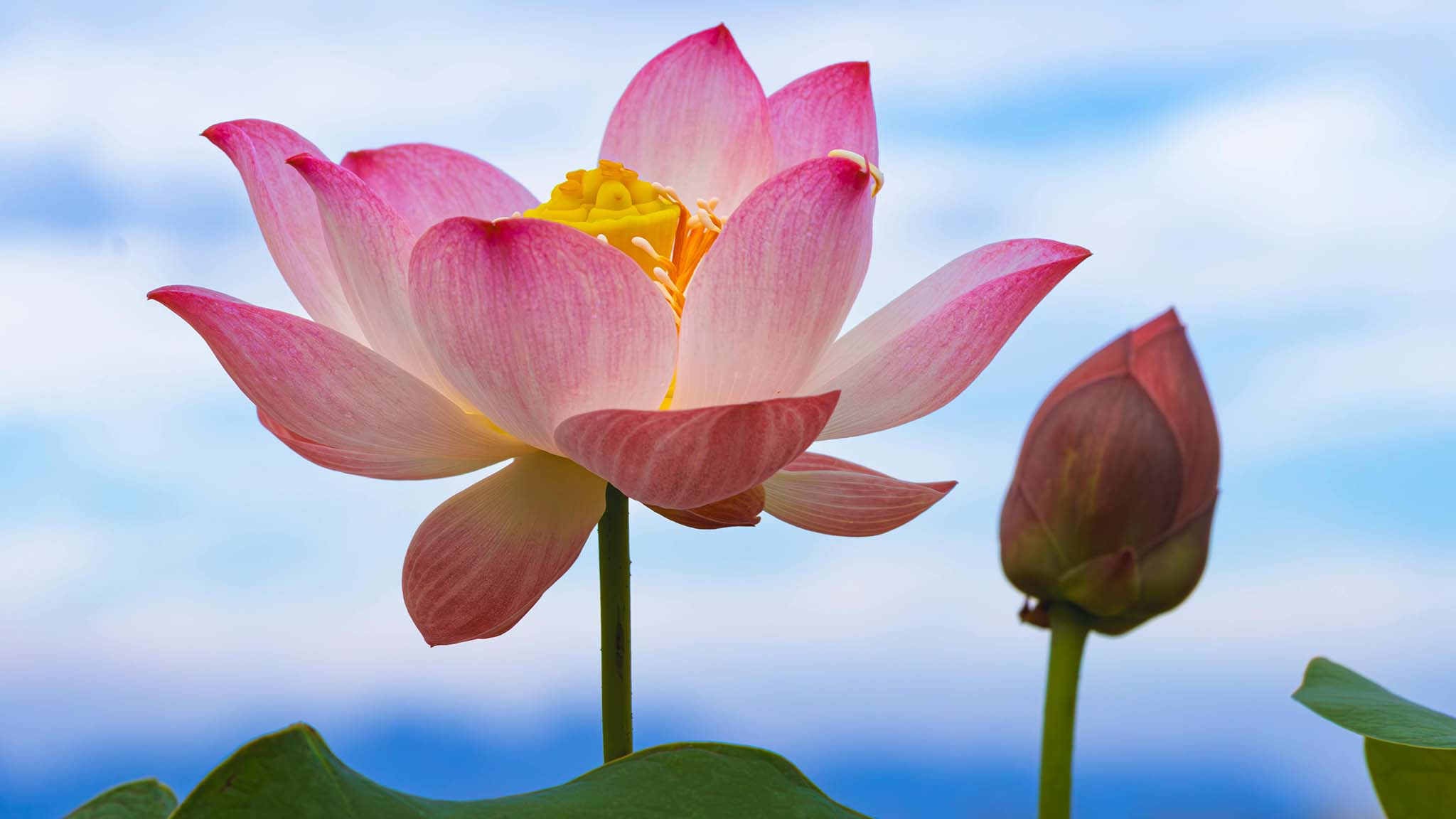 Лотос цветет всего 3-4 дня, оттенки меняются от ярко-белого до бледно-розового. Диаметр распустившегося цветка достигает до 80 см. Плантация лотосов является памятником природы и находится под охраной.