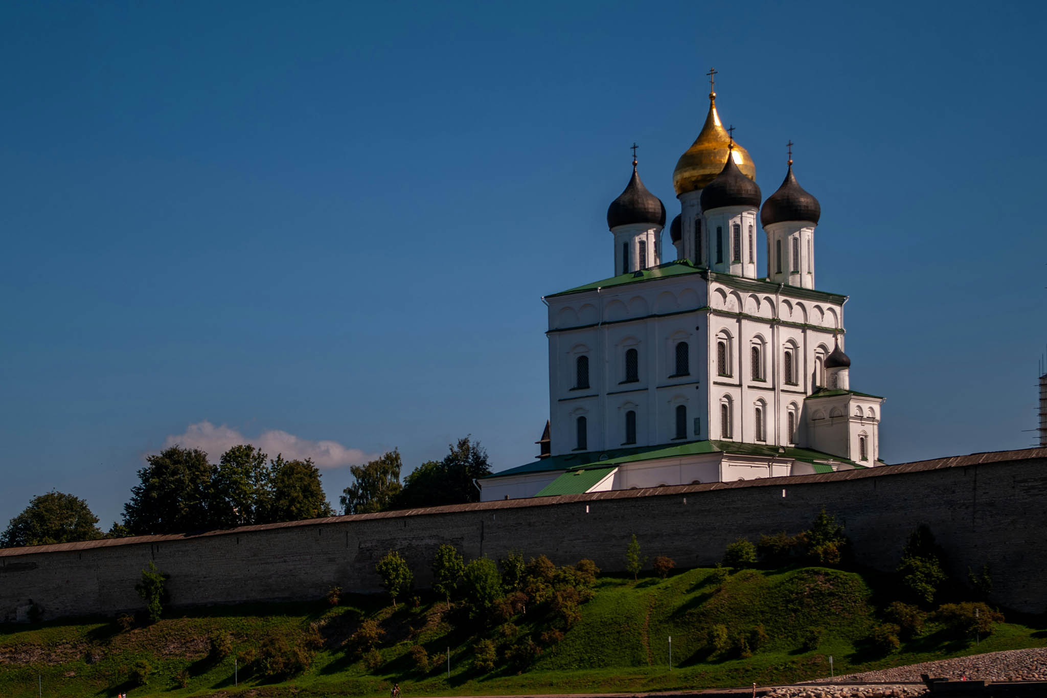 Душа Пскова и замечательный образец русского религиозного зодчества. Кафедральный собор, который сохранился до наших дней, четвертый по счету. Первая церковь на этом месте была построена в X веке по указу княгини Ольги, а пятиглавое здание, украшающее кремль сегодня, – в 1699 году. В крипте (нижней церкви) покоятся псковские князья и представители духовенства. Собор действующий, всех желающих пускают бесплатно.