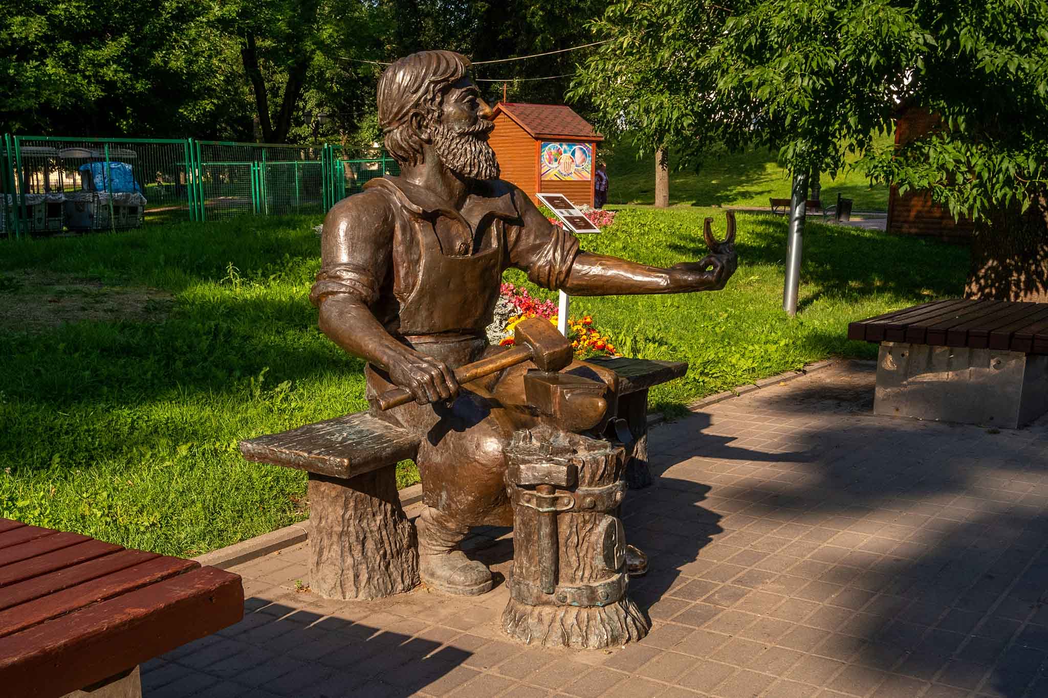 Псков считают кузнечной столицей России, а местных жителей издавна стали называть скобарями. По одной из версий, слово произошло от скобяных изделий, которые изготавливали здесь и отправляли в Санкт-Петербург. Памятник с добродушным скобарем, приветливо протягивающим прохожим подкову, появился в городе в 2014 году. Его автор — скульптор Игорь Голубев. Памятник находится в Детском парке. Когда отыщите, обязательно потрите подкову на счастье.