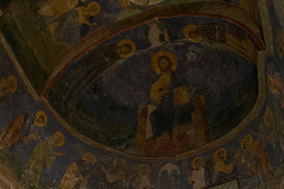 Стены и потолок в Спасо-Преображенском соборе Мирожского монастыря украшены фресками домонгольского периода, которые в первой половине XII века писали византийские мастера. В храме можно увидеть «Оплакивание Христа», «Исцеление 10 прокаженных», «Сретение Господне» и другие. Одна из самых интересных — купольная фреска «Вознесение Господне», на которой Христа окружает хоровод из ангелов. Собор входит в Список объектов всемирного наследия ЮНЕСКО и работает как музей. Посетителей пускают по сеансам, только в сухую погоду и не более 20 человек одновременно. В соборе проводят экскурсии, их заказывают на сайте монастыря.