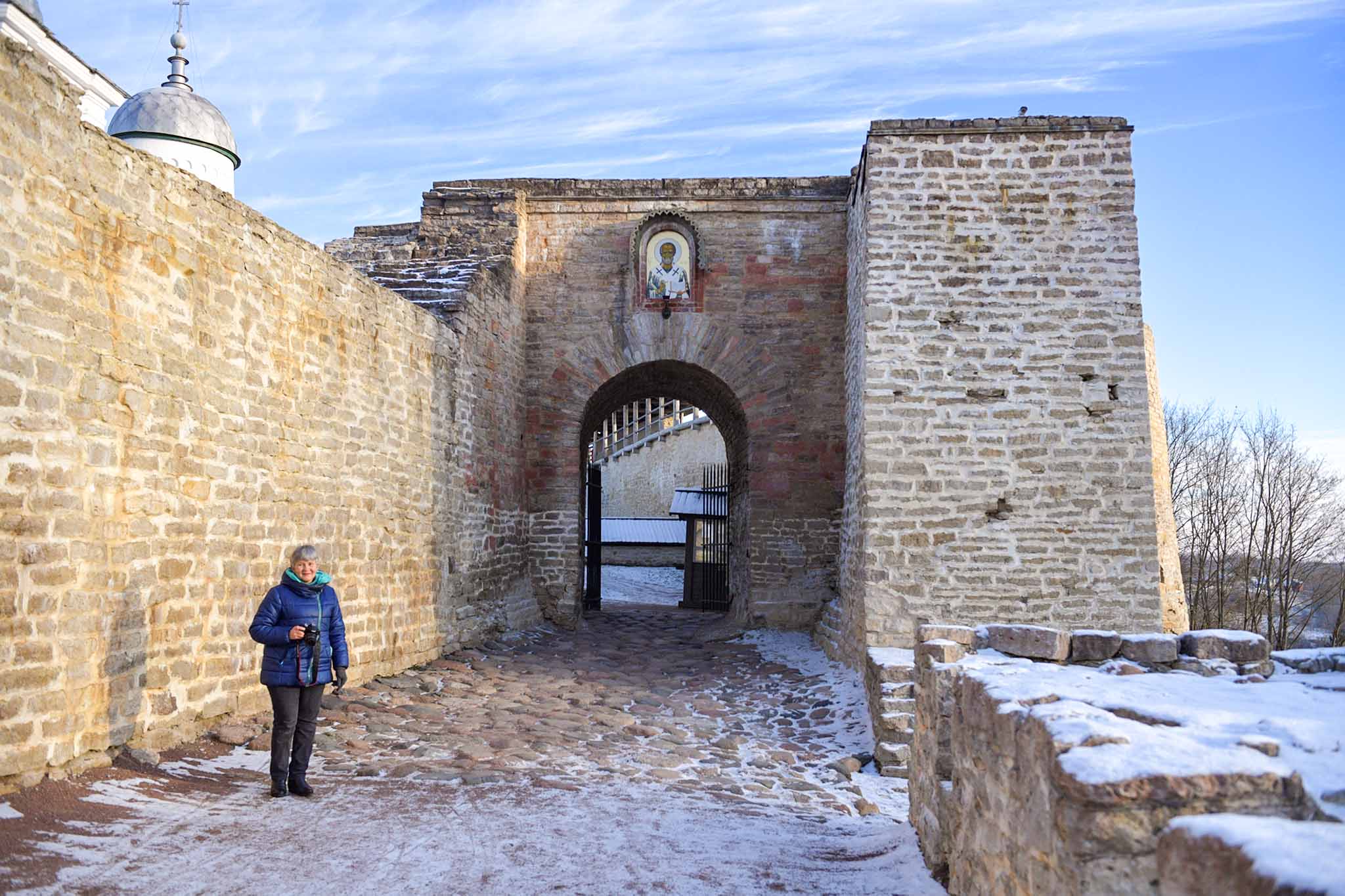 После неспешной прогулки вдоль массивных каменных стен крепости стоит детальнее осмотреть старинные постройки на ее территории. Одна из древнейших сохранившихся частей — башня Луковка, на которой сейчас обустроена обзорная площадка.