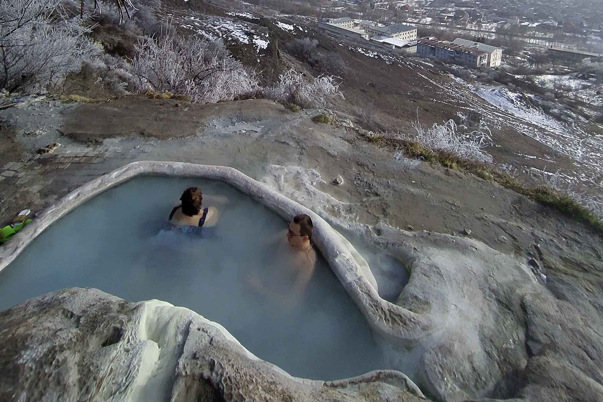 Даже если вы никогда не купались в водоемах в холодное время года, в Пятигорске будет большой соблазн окунуться в горячий источник прямо на улице. Это буквально природные джакузи под открытым небом с минеральной водой. И таких мест — четыре! Поэтому не забудьте купальник.