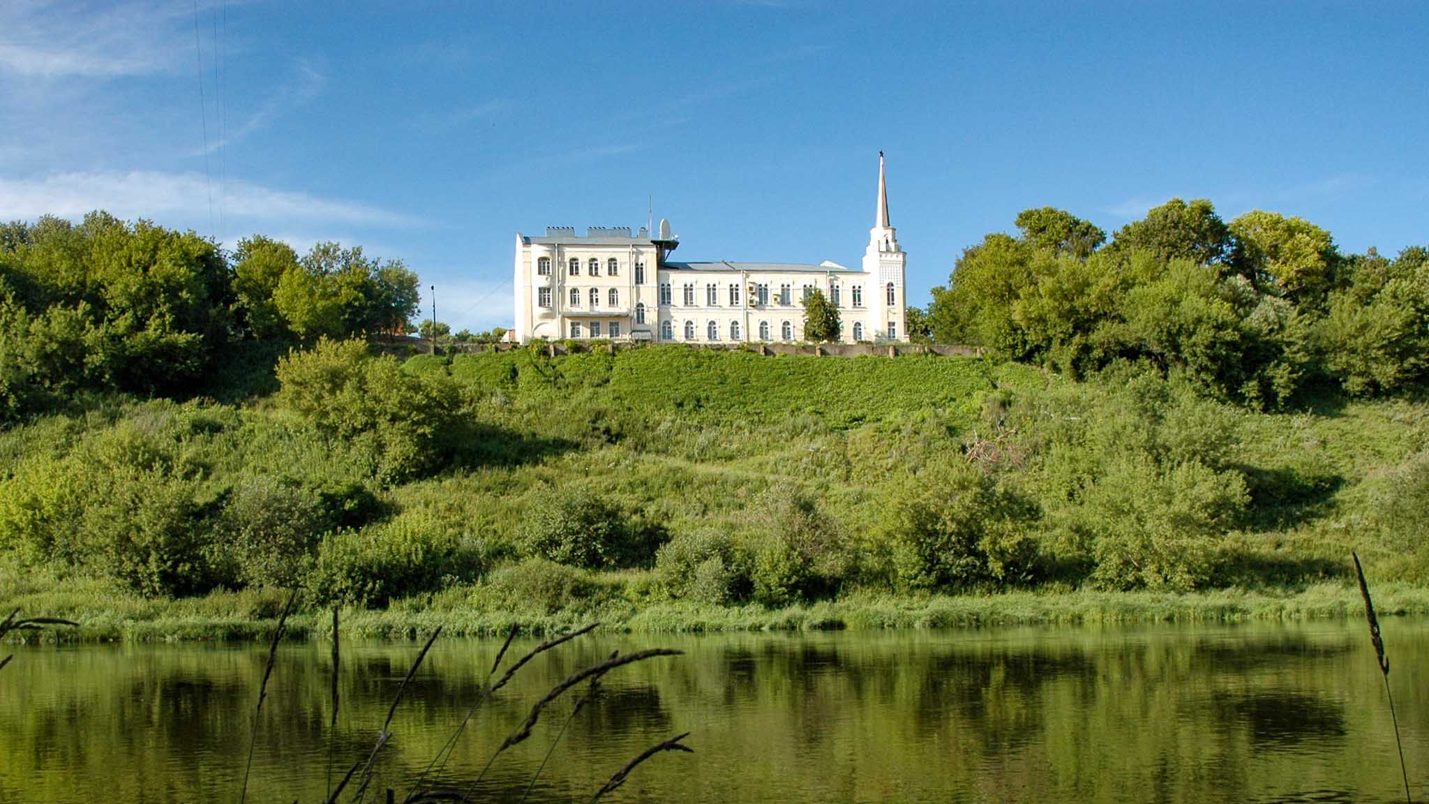 Для этого красивого здания в стиле модерн постройки начала XX века выбрали место на крутом берегу реки, где раньше стояла гостиница местного мещанина Некрасова. Над угловой башней установили шпиль, который нес на себе сначала двуглавого орла, потом герб СССР, затем пятиконечную звезду. Во время войны здание сильно пострадало, но его все-таки решили восстановить. Так что можно прийти полюбоваться и самим домом, и видами вокруг.