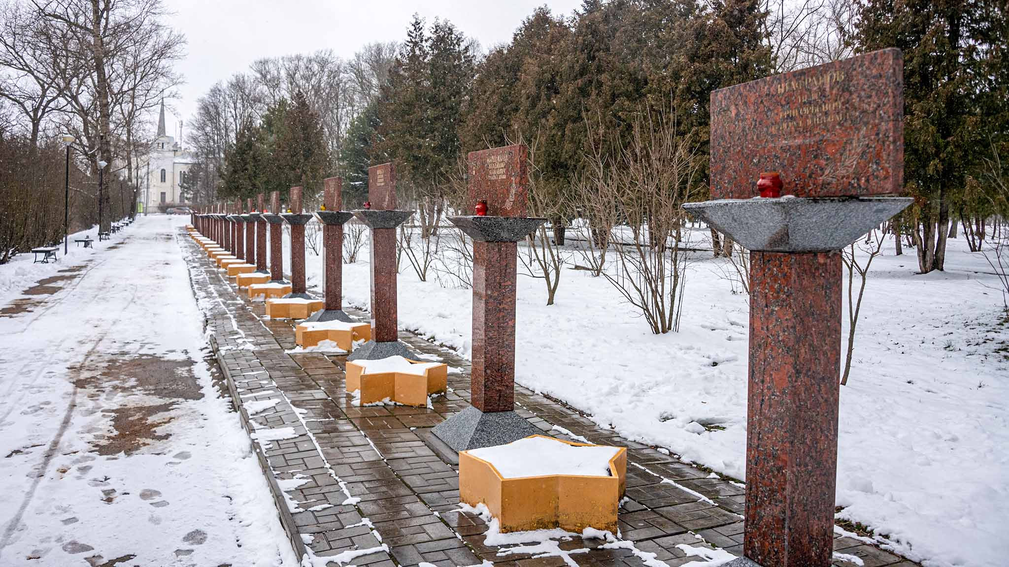 Аллея Героев начинается у памятника, установленного на могиле первого ржевского военкома Василия Грацинского. В 1918-м, командуя отрядами, которые подавляли контрреволюционные восстания, он был смертельно ранен в одном из боев. В тот же год на его могиле и установили обелиск с надломанной колонной – символом рано оборвавшейся жизни (Грацинскому было 26 лет).
