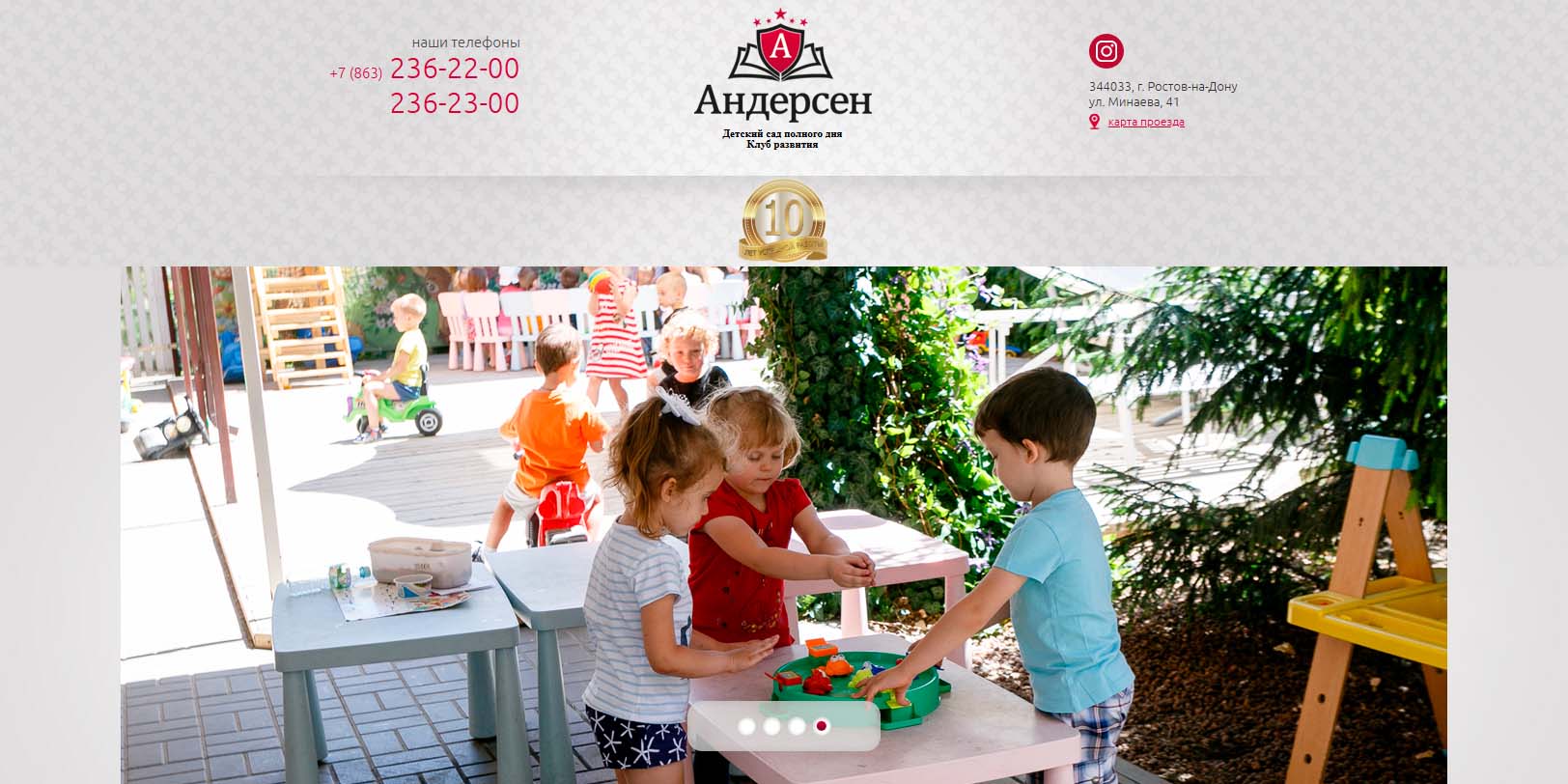 | «Андерсен» | Абонемент на месяц: 38 500 руб. полный день, питание — 150 руб./день, разовое пребывание 1850 руб. |