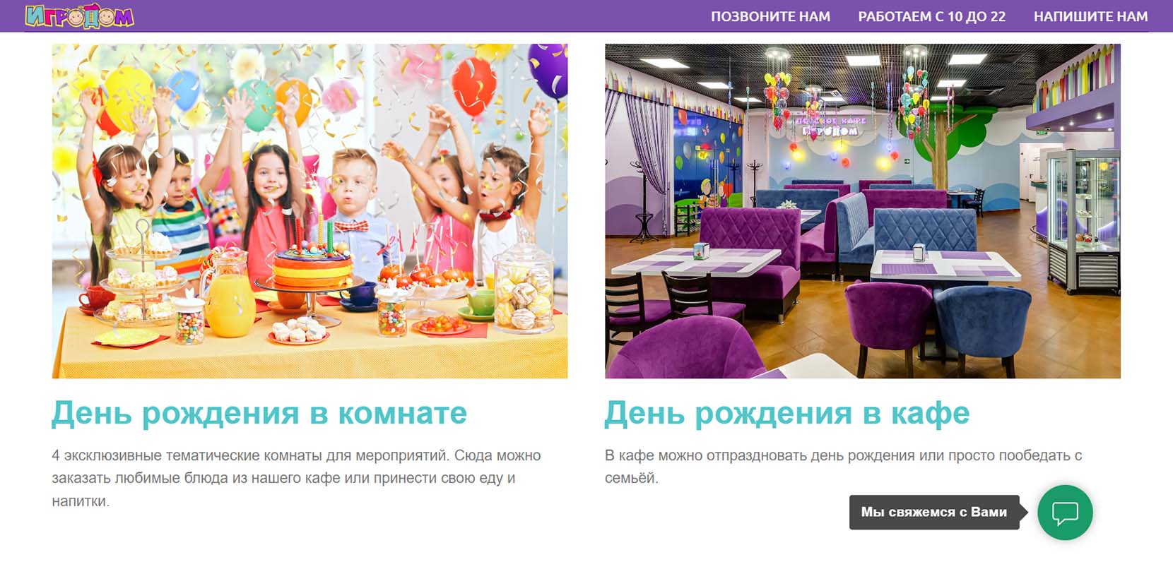 Здесь можно устроить праздник детям от двух до десяти лет. Для них — игровая зона, выполненная из натурального дерева, веревочный парк, игровой комплекс с лесенками, кресла-качели, скалодром, стол с конструктором «Лего» и различные игрушки. Для проведения детского праздника есть банкетная зона, кухня, музыкальная аппаратура и фотозона. При желании можно заказать аниматора или разнообразить день рождения шоу-программой.