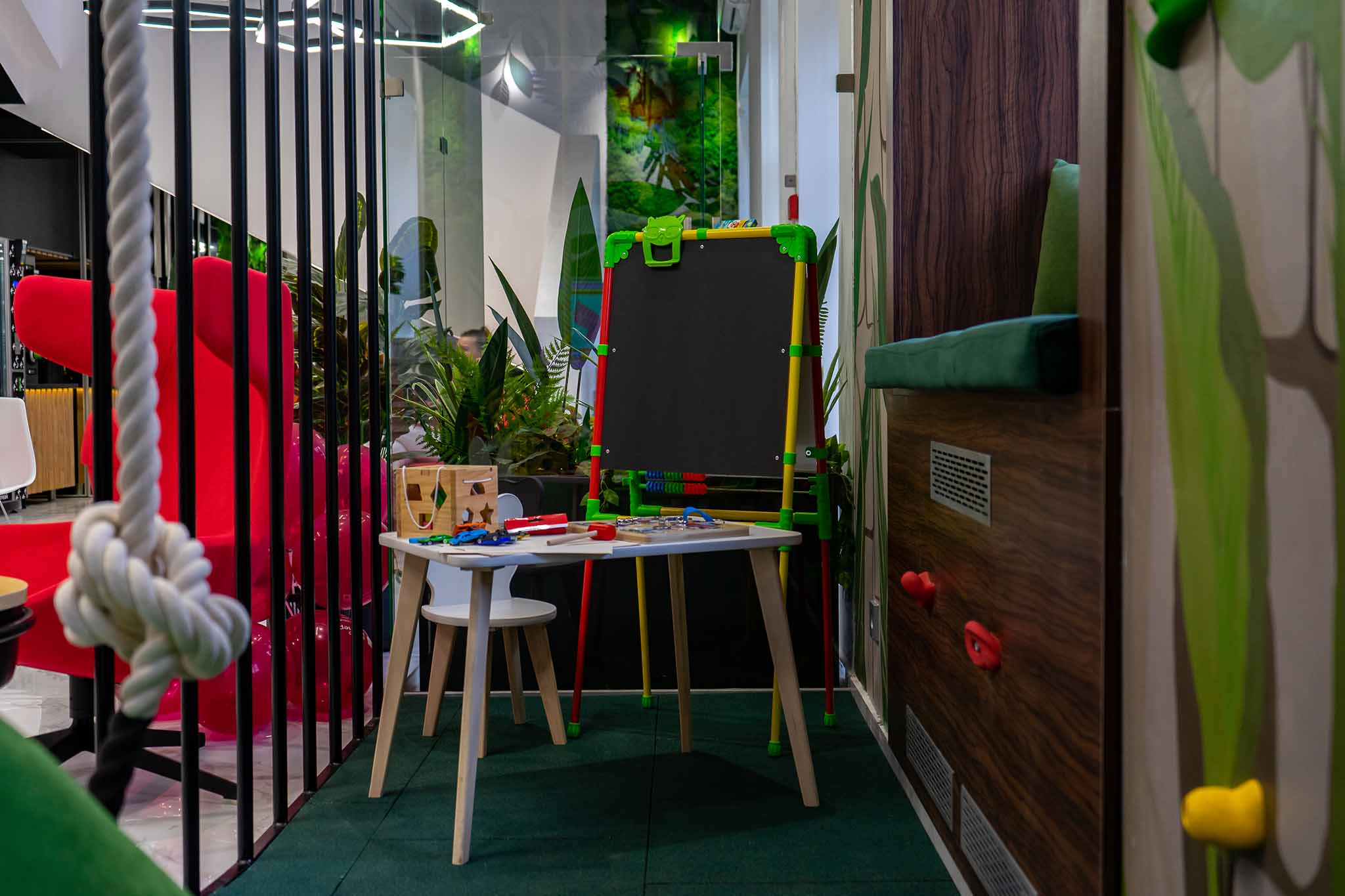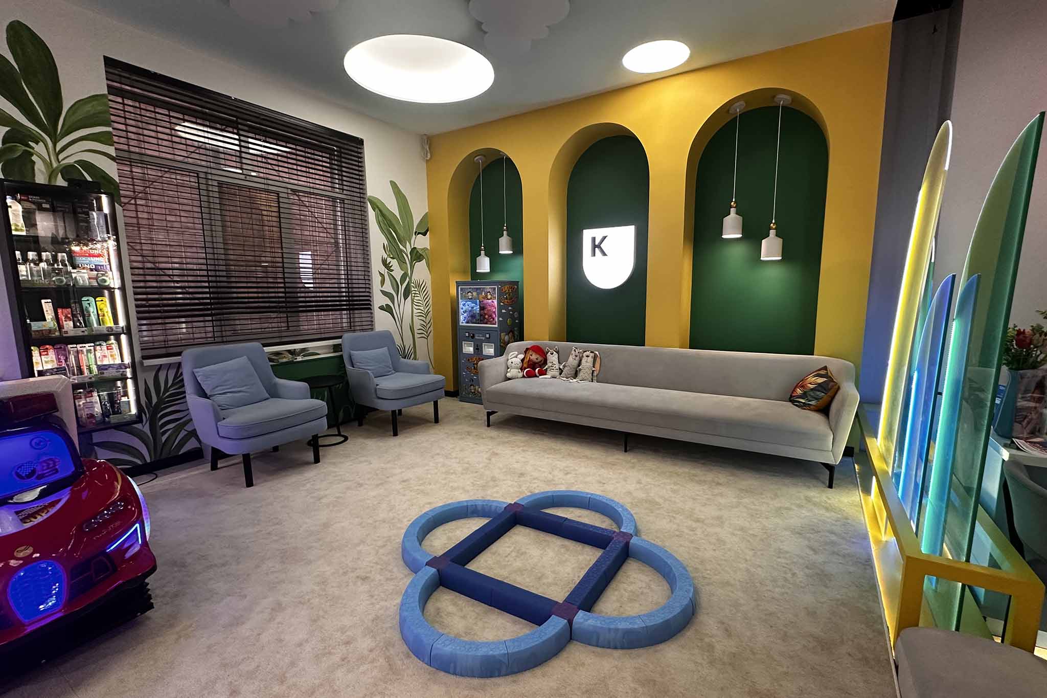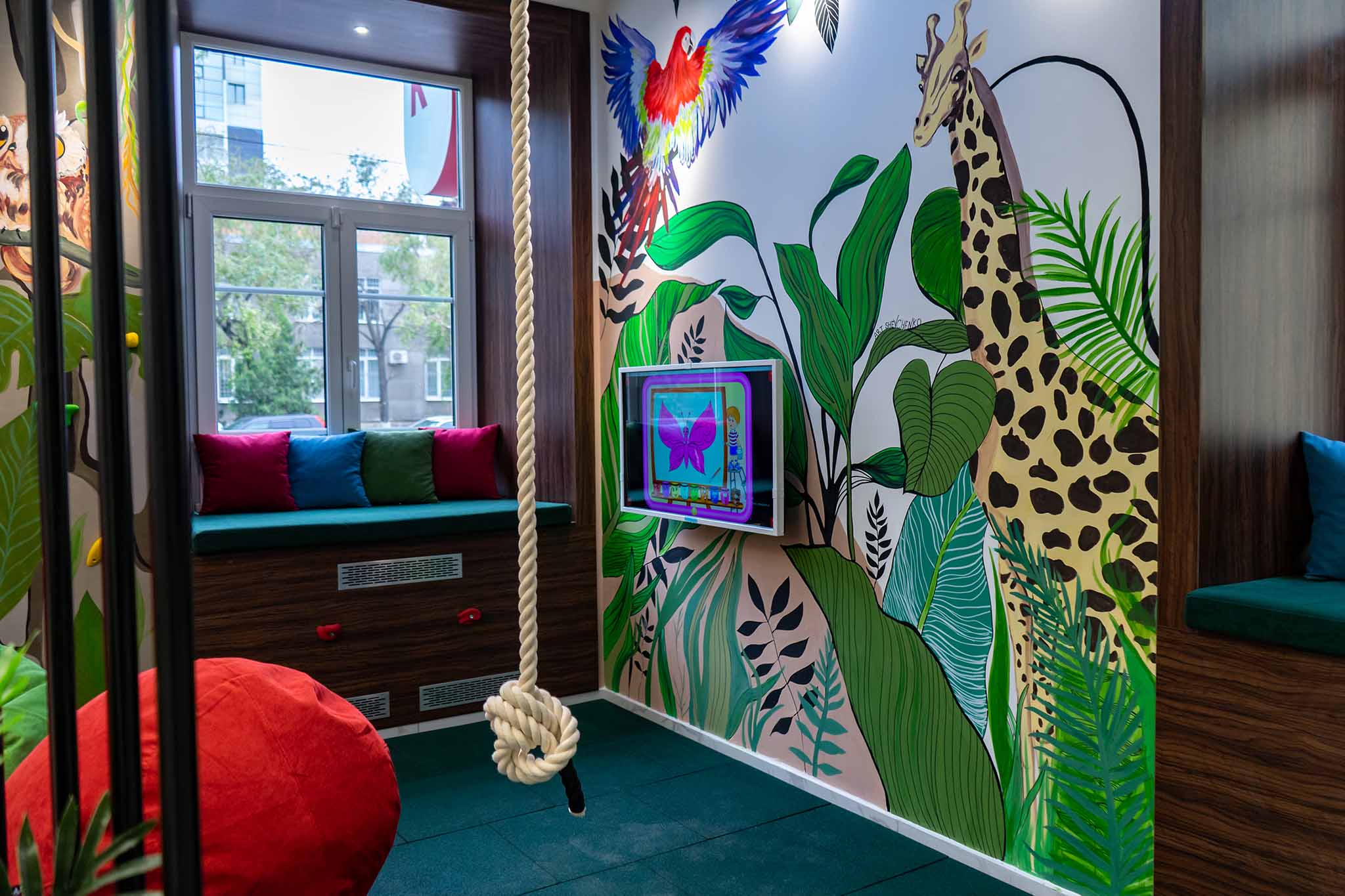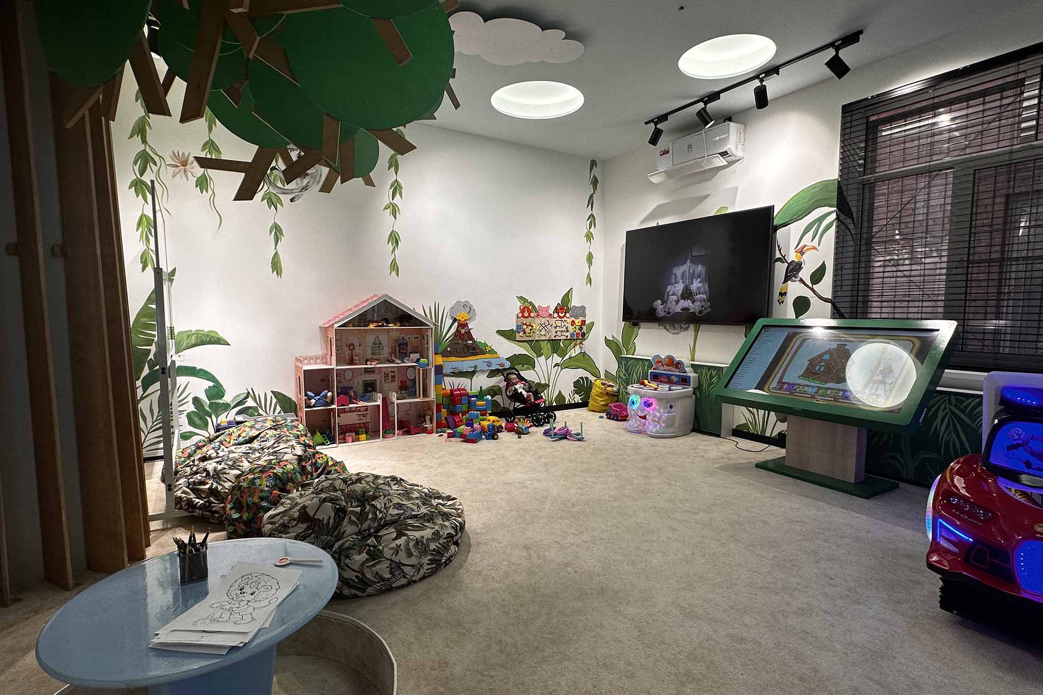 Прием ведется в клиниках с дружелюбной атмосферой. Администраторы и медсестры встречают с улыбкой, а аниматор помогает расслабиться стеснительным или тревожным детям. Яркий интерьер и цветная униформа вместо белых халатов создают ощущение безопасного пространства. В клиниках есть игровые зоны: детский уголок, машинки, сенсорная игровая консоль и игрушки.