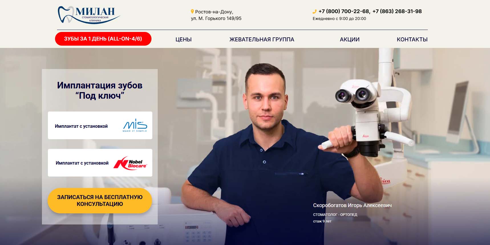 — На сегодняшний день методика дентальной имплантации является популярной и востребованной услугой в Ростове-на-Дону. Она оказывается во многих стоматологических клиниках города. Конечно, врачи в первую очередь стараются сохранить естественные зубы, но иногда объективно нет такой возможности. Поэтому имплантация является разумным, достаточно комфортным и зарекомендовавшим себя вариантом выбора.