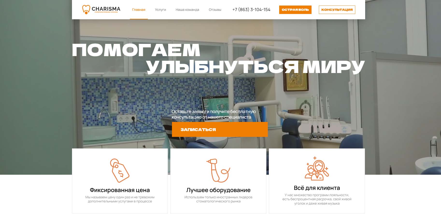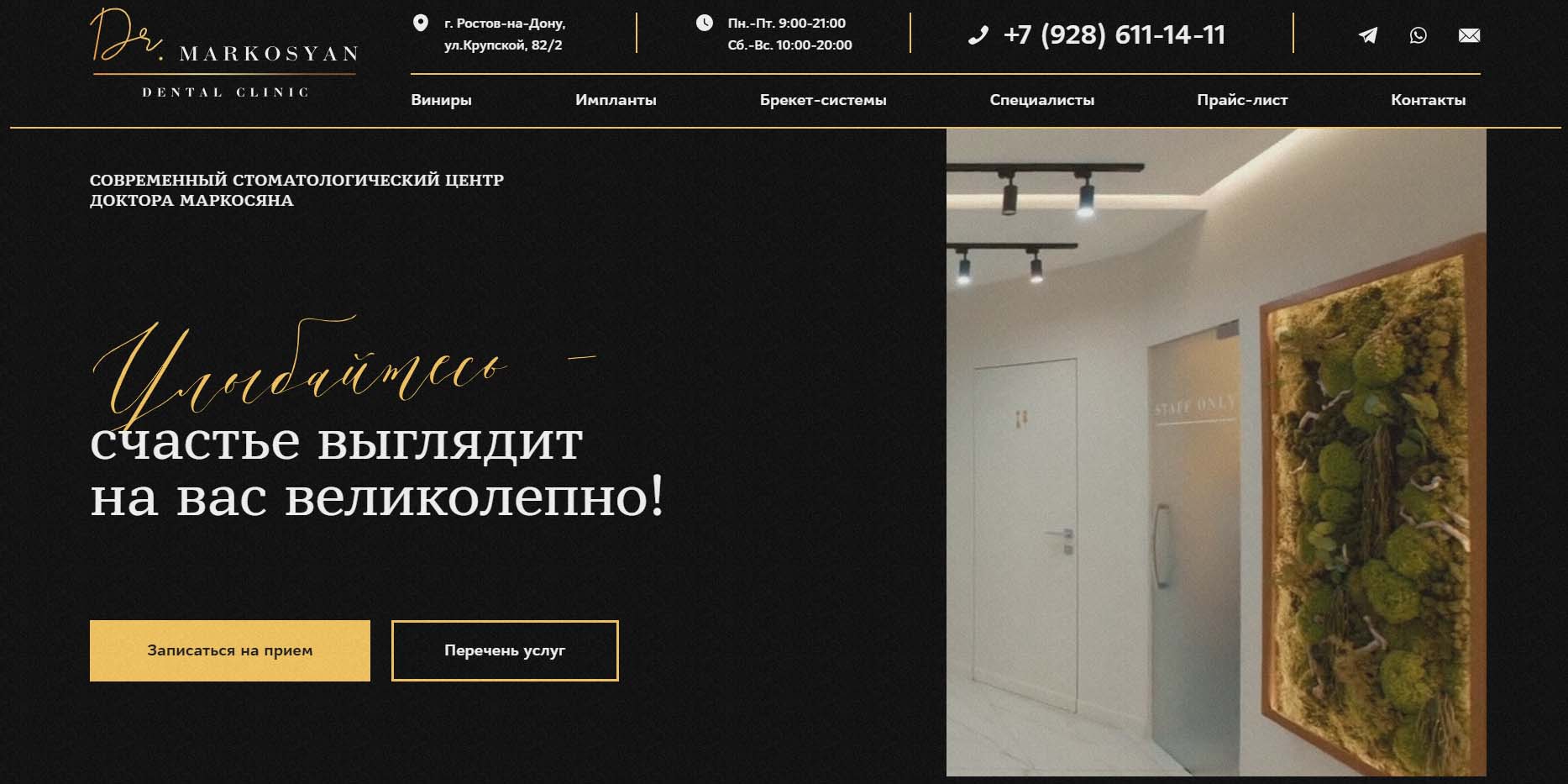 Стоматологический центр, который обещает высококачественный сервис и комфорт во всем: в общении, интерьере и при приеме у врача. Занимаются любыми проблемами с зубами, делая акцент на безопасность, результат и индивидуальный подход. Используют современное точное оборудование и сертифицированные стоматологические материалы. Проводят классические имплантации и одномоментные — за один прием с удалением зуба. Опыт хирургов-имплантологов — более 10 лет.