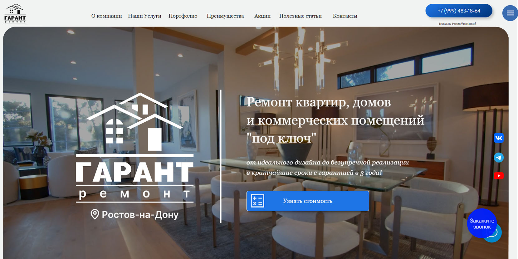 Компания более 15 лет на рынке, за этот период выполнено более 1840 ремонтов. Ежемесячно ведут работу более чем на 100 объектах. Работают с клиентом в том числе удаленно, личное присутствие заказчика необходимо только в двух случаях: первый — при заключении договора, второй — при приемке готового ремонта. Приемка, оплата и подписание документов может происходить и в электронном формате. После каждого этапа ремонта предоставляют фото- и видеоотчет. Дают гарантию на работы 3 года.