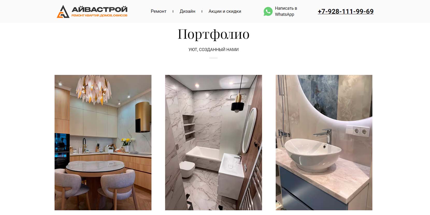 Компания с профессиональной бригадой строителей в штате. Предоставляют широкий спектр услуг по ремонту квартир: демонтаж, дизайн-проект, закупку и доставку материалов, монтаж сетей, отделочные работы, выбор, доставку и монтаж мебели. Стоимость рассчитывается индивидуально, оплата поэтапная после сдачи работ. Для удобства клиентов представлены несколько готовых тарифов на ремонт — эконом, стандартный, дизайнерский, бизнес, премиум — с фиксированной стоимостью работ за квадратный метр.