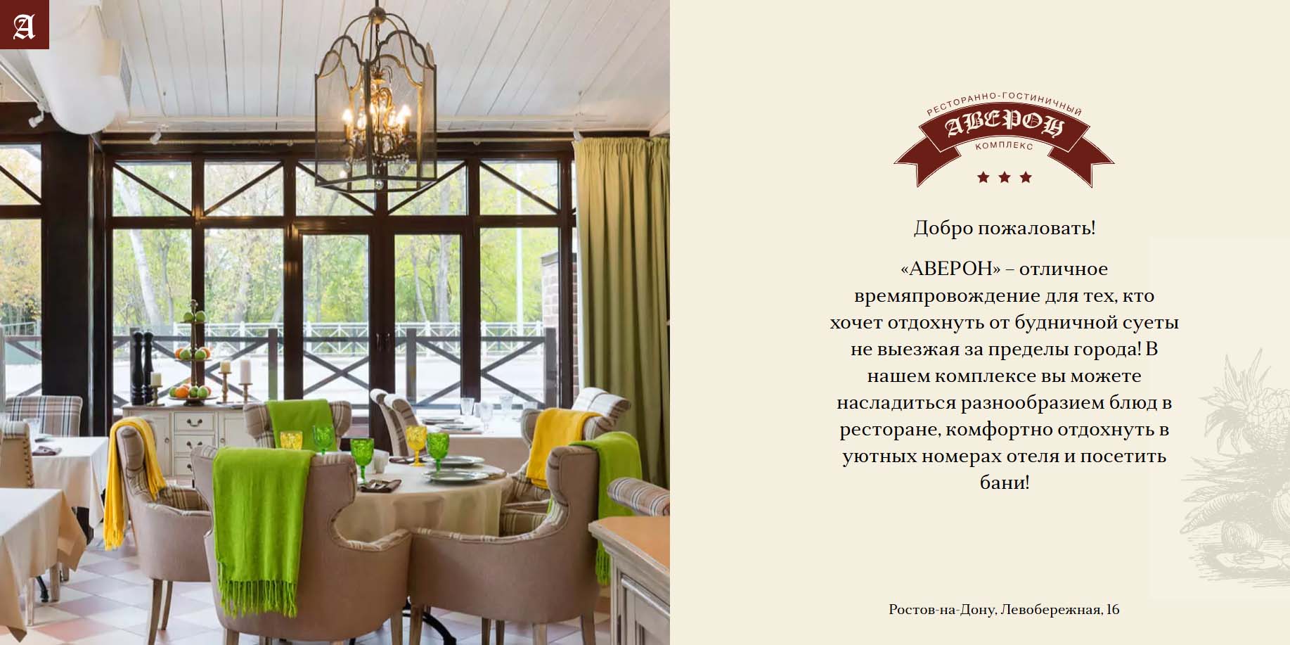 Ресторанно-гостиничный комплекс на левом берегу Дона — это стилизованный отель, который сочетает легкий прованский стиль с гостеприимством сельского немецкого дома. Туристы могут остановиться в комфортабельных двухместных номерах различных категорий, где есть все необходимое для отдыха. В ресторане гостиницы готовят вкусный шашлык, колбаски на гриле и шницели.