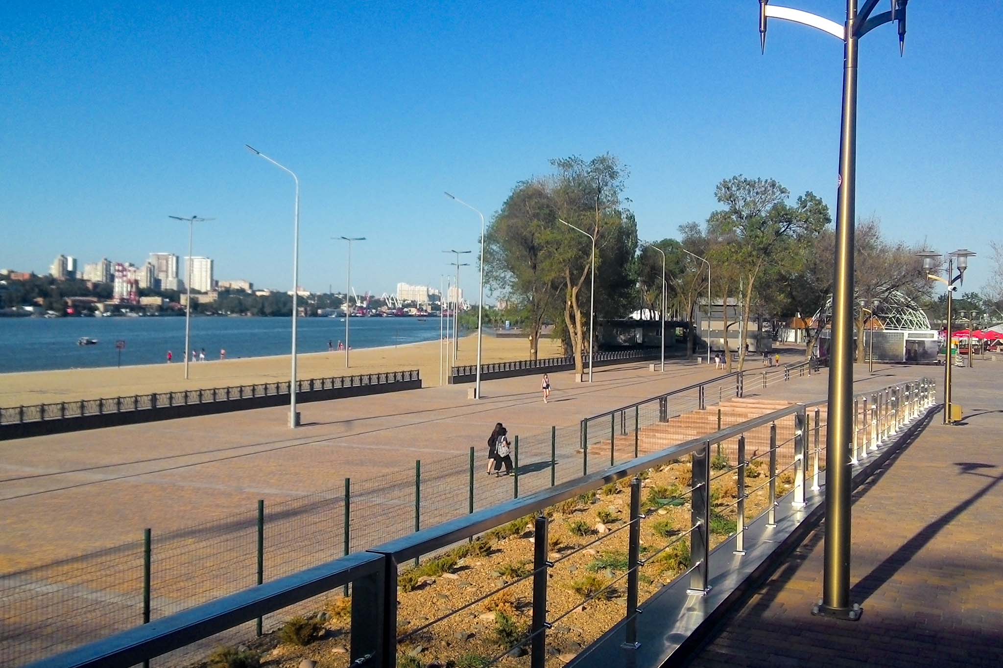 В парке проложены прогулочные аллеи с видом на реку Дон и Ворошиловский мост. Для любителей отдыха у воды зонтиками, раздевалками и всем необходимым для комфортного отдыха оборудован городской песчаный пляж.