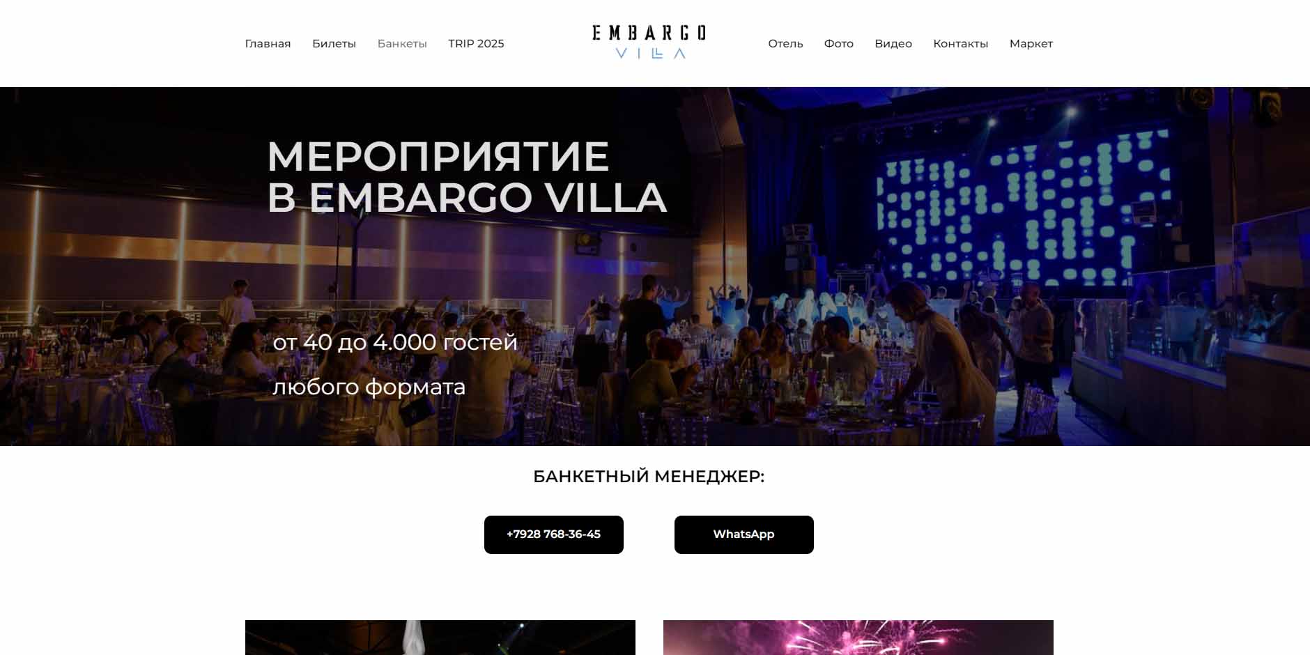 | Средний чек | Билеты в новогоднюю ночь — от 2000 руб., столик на 4 гостей — депозит от 20 000 руб. |