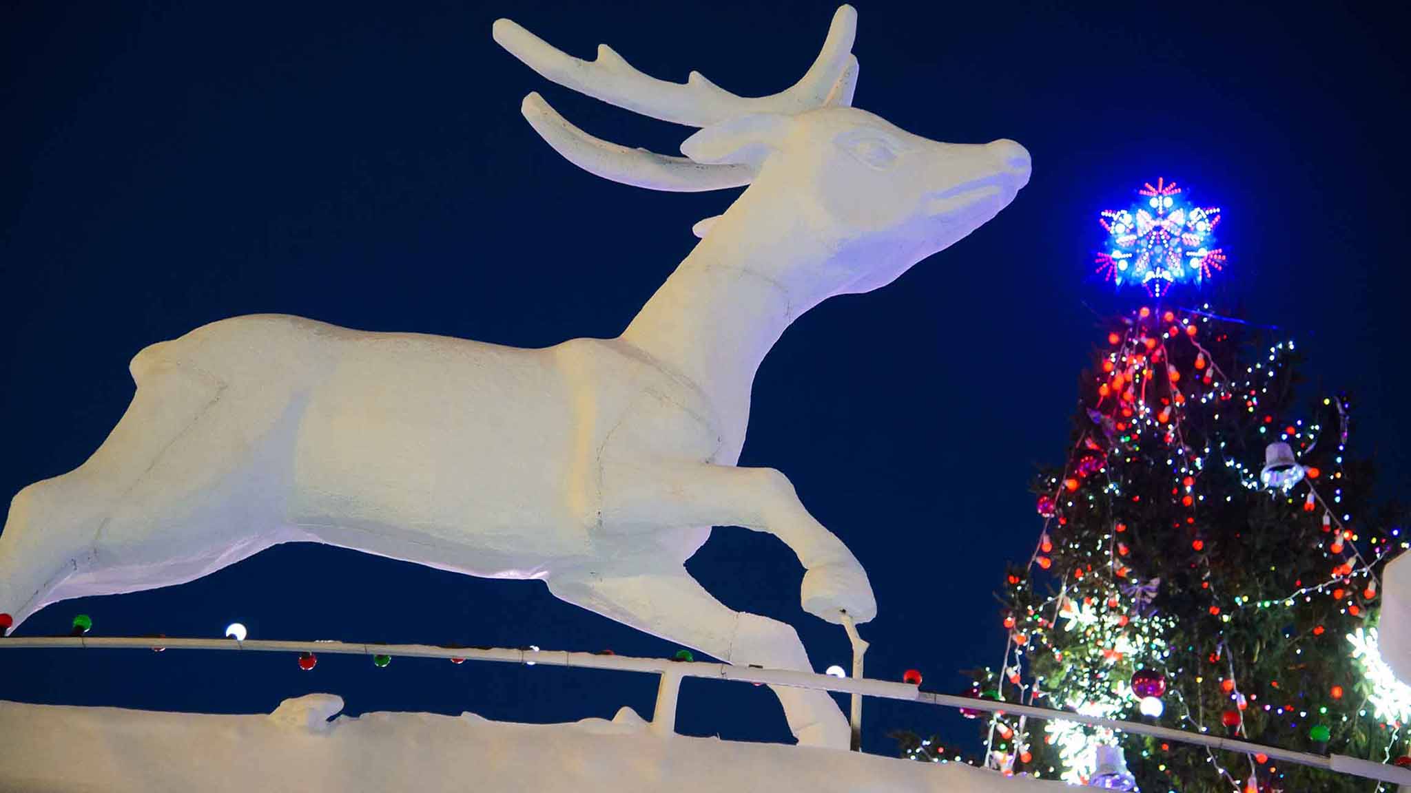 На площади Советов можно будет сделать фото возле арки в виде снежинки. Композиция высотой пять метров будет светиться огоньками. Здесь, на площади, поставят вторую елку с гирляндами и игрушками в виде звезд.