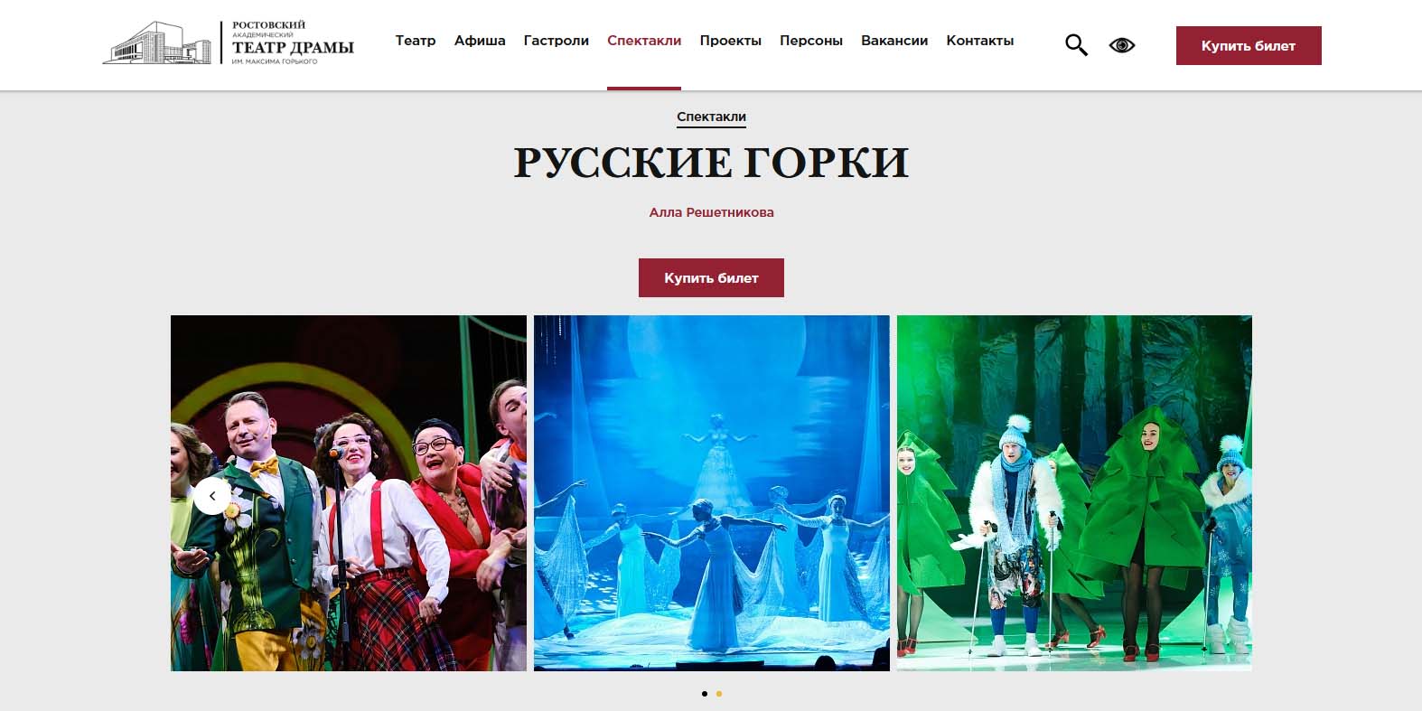 В Рождественский вечер в театре покажут новогоднее шоу «Русские горки». В шоу актеры вместе со зрителями отправятся в прошлое. Будут подготовлены красочные музыкальные номера, настраивающие на тепло и любовь. Также 7 января можно будет посетить уже полюбившийся ростовчанам спектакль «Погадайте на любовь». Сюжет его разворачивается вокруг семьи, которая собирается в канун Нового года в загородном доме. В программе вечера — сеанс общения с мистическими силами. Постановщики говорят, что в этом представлении сплелись любовь, предсказания и тонкий юмор.