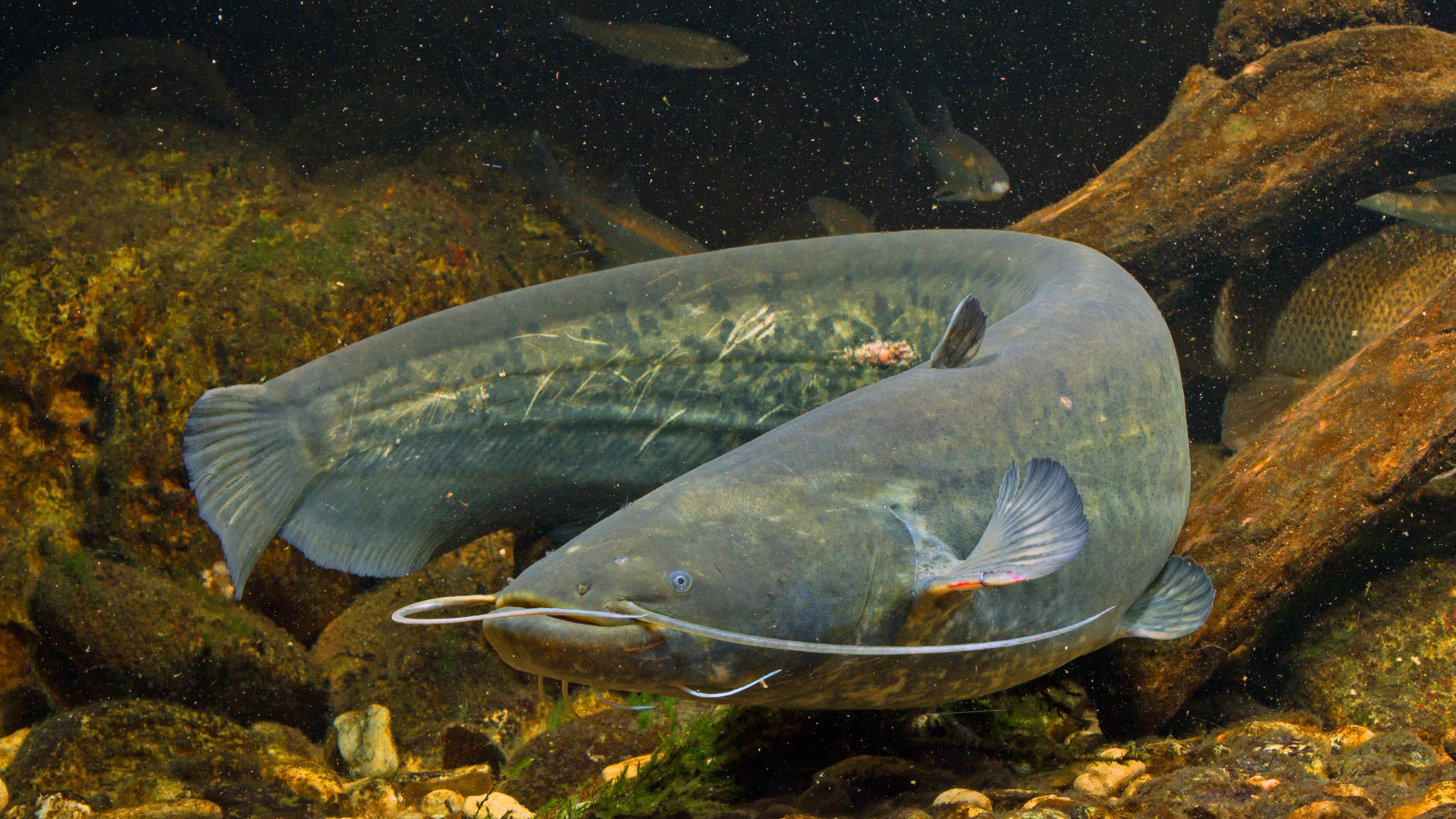 Сом — одна из самых популярных рыб на Дону. Крупный хищник достигает 3 метров в длину, а вес его может превосходить 200 кг. Сом напоминает по структуре тела питона — длинное, но при этом очень сильное. Отличительная особенность — хвост, который зачастую занимает половину длины тела. Рот с большим количеством мелких зубов украшают две пары усов, при этом у сома нет чешуи.