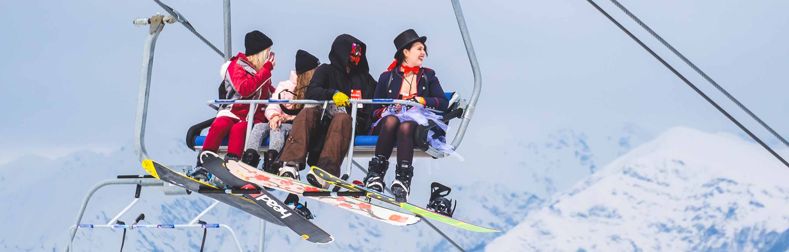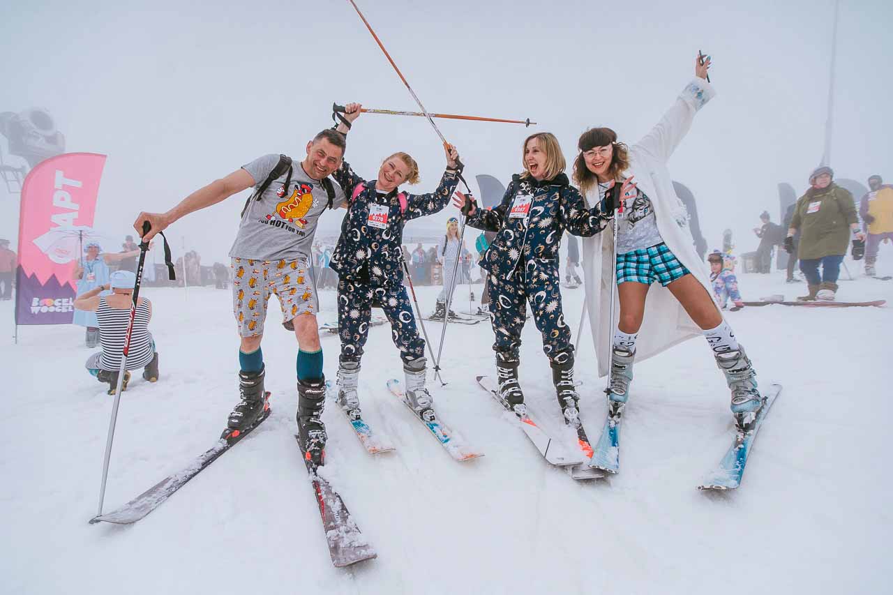 Лучшие трюки на лыжах и сноубордах с приземлением в оборудованный на склоне бассейн будут демонстрировать профессионалы, а все желающие смогут прыгать туда в карнавальных, вечерних и свадебных костюмах.