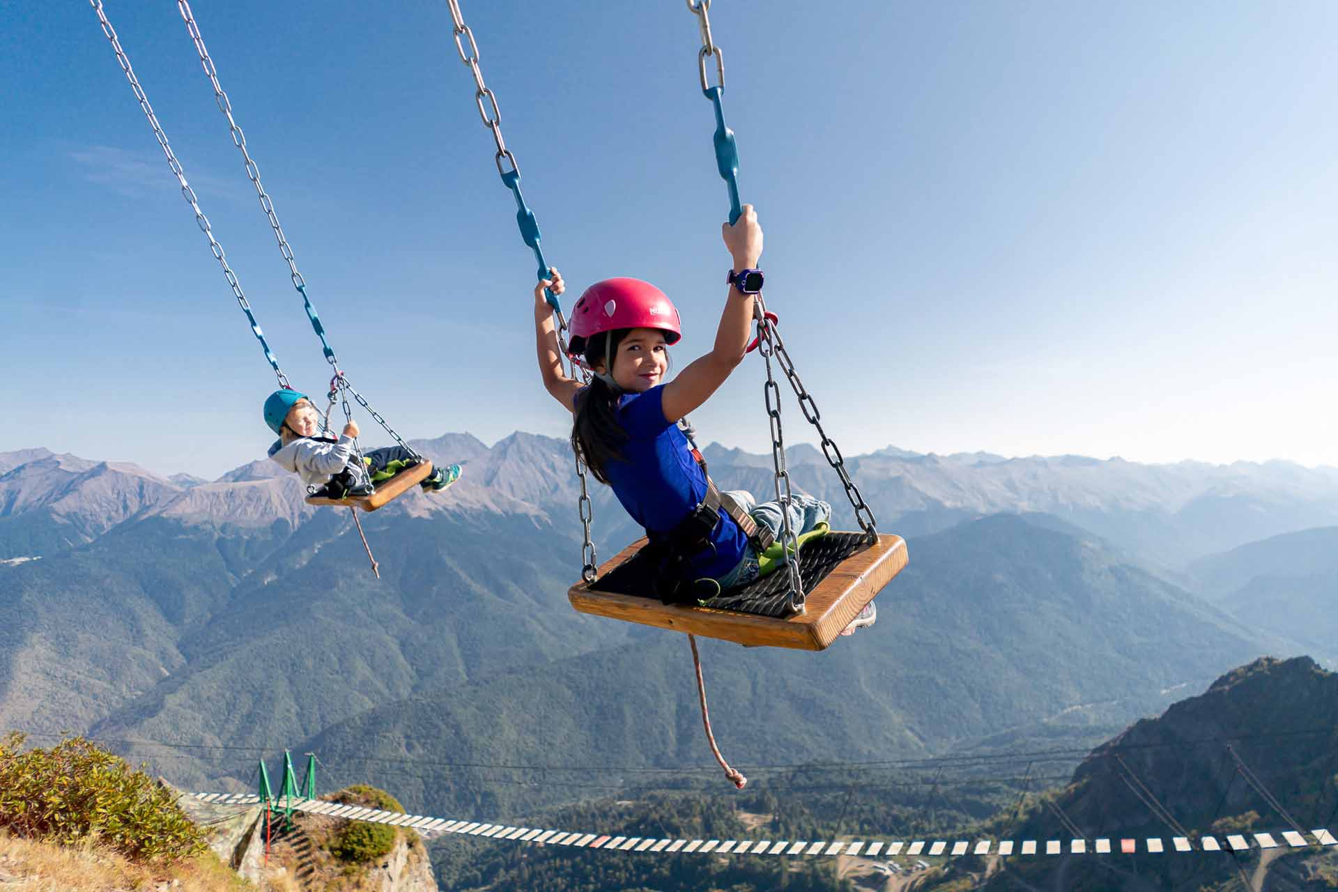 На вершине можно не только получать удовольствие от фантастических пейзажей, здесь доступны и довольно экстремальные развлечения. Например, стоит пройтись по подвесным мостам, натянутым над глубоким ущельем, или покачаться над пропастью на высокогорных качелях.